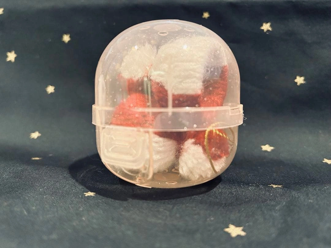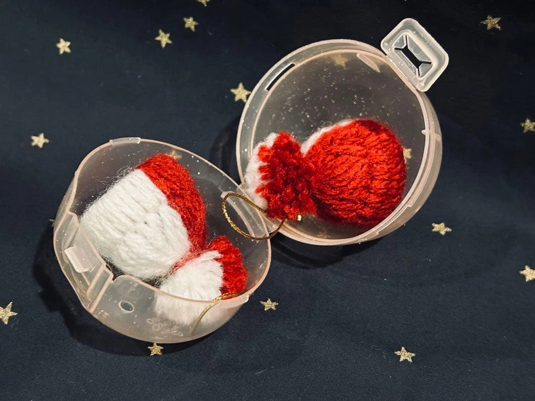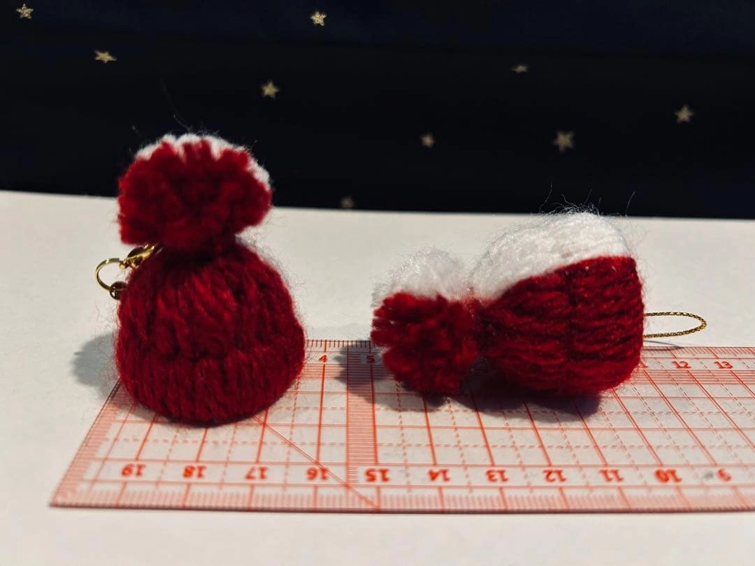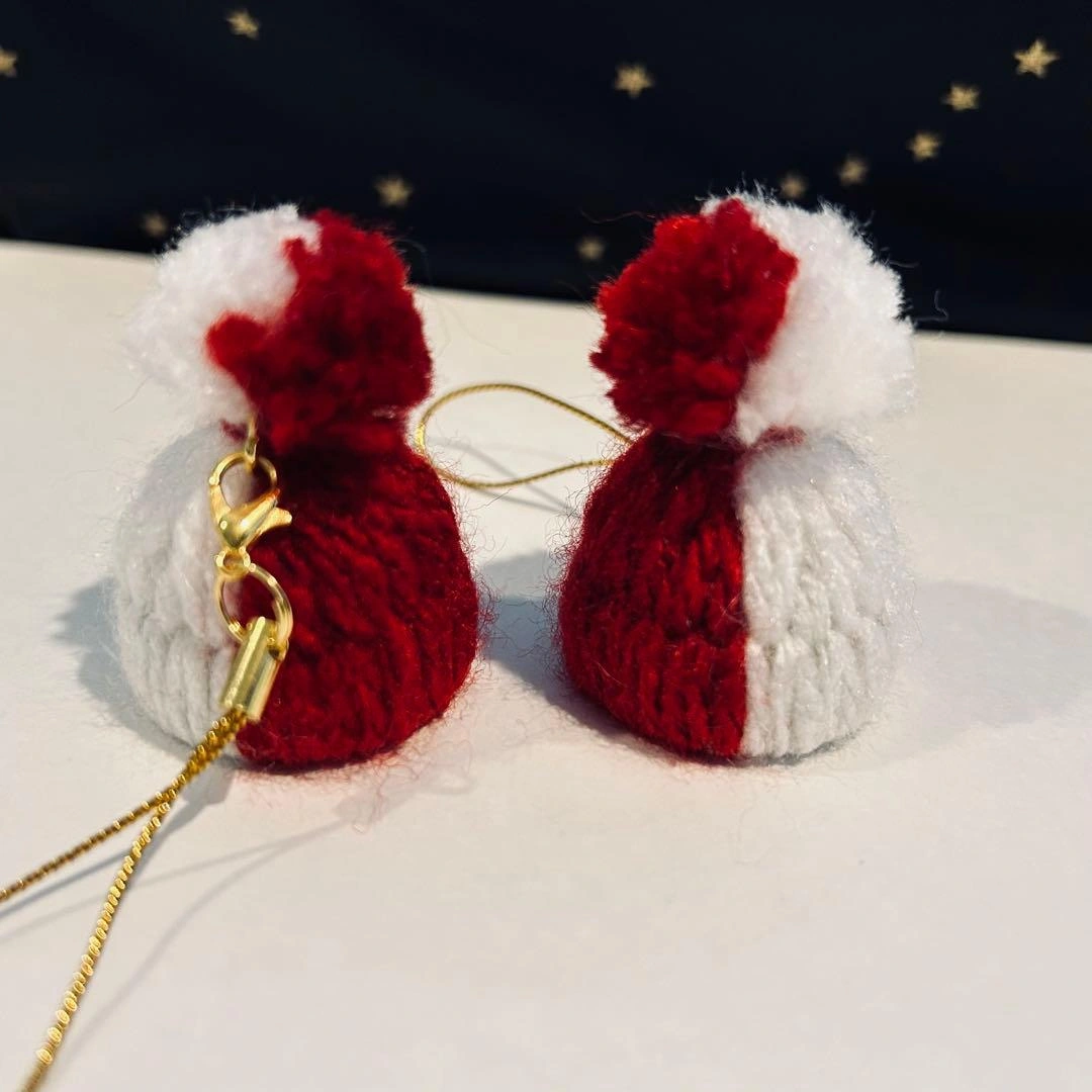 小さな毛糸の帽子チャーム2個セットです。 濃いめ赤と白のツートンカラー、金具はゴールドカラーです。 カバンに付けたり、クリスマスツリーに飾っても可愛いと思います。 サイズ:約5cm×3.5cm 素材:毛糸→アクリル 台紙→厚紙(帽子の下の部分に使用) 金具→スチール ひも→ポリエステル ※こちらは、接着剤等は使用していません。毛糸を引っ張ると形が崩れたり、毛糸が抜けてしまいますので、ご注意ください。下の部分に使用している厚紙も負荷がかかると潰れてしまいますので、お気をつけください。 実際の色に近くなるよう撮影をしていますが、照明等で多少違う場合がありますので、ご了承ください。 種別···キーホルダー 種類···クリスマスオーナメント・飾り