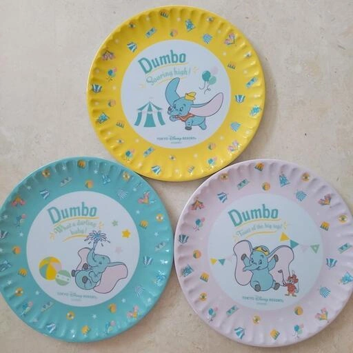 TOKYO Disney RESORT ダンボ メラミン プレート お皿 3枚セット ベビー用食器です。 状態:数回使用 サイズ:直径約16cm ※手洗いのみ ※電子レンジNG、食洗機NG、オーブンNG、冷凍NG ※バラ売り不可 割れや欠けはあ りませんが、数回使用しておりますので全体的に少し傷と水滴の跡があります。ご理解頂ける方にお譲り致します。 ご希望の方はお気軽にご連絡ください。