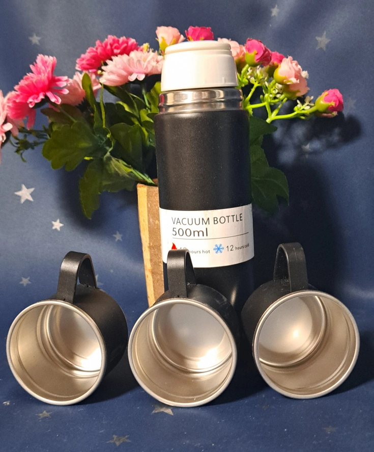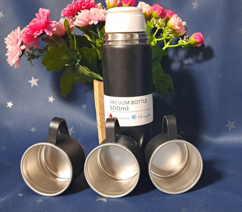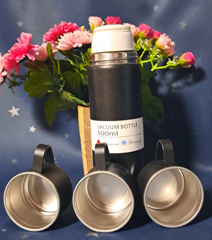 あたたかさ・水筒(500ml) ・コップ3個 ・カラー:ブラック ・未使用品