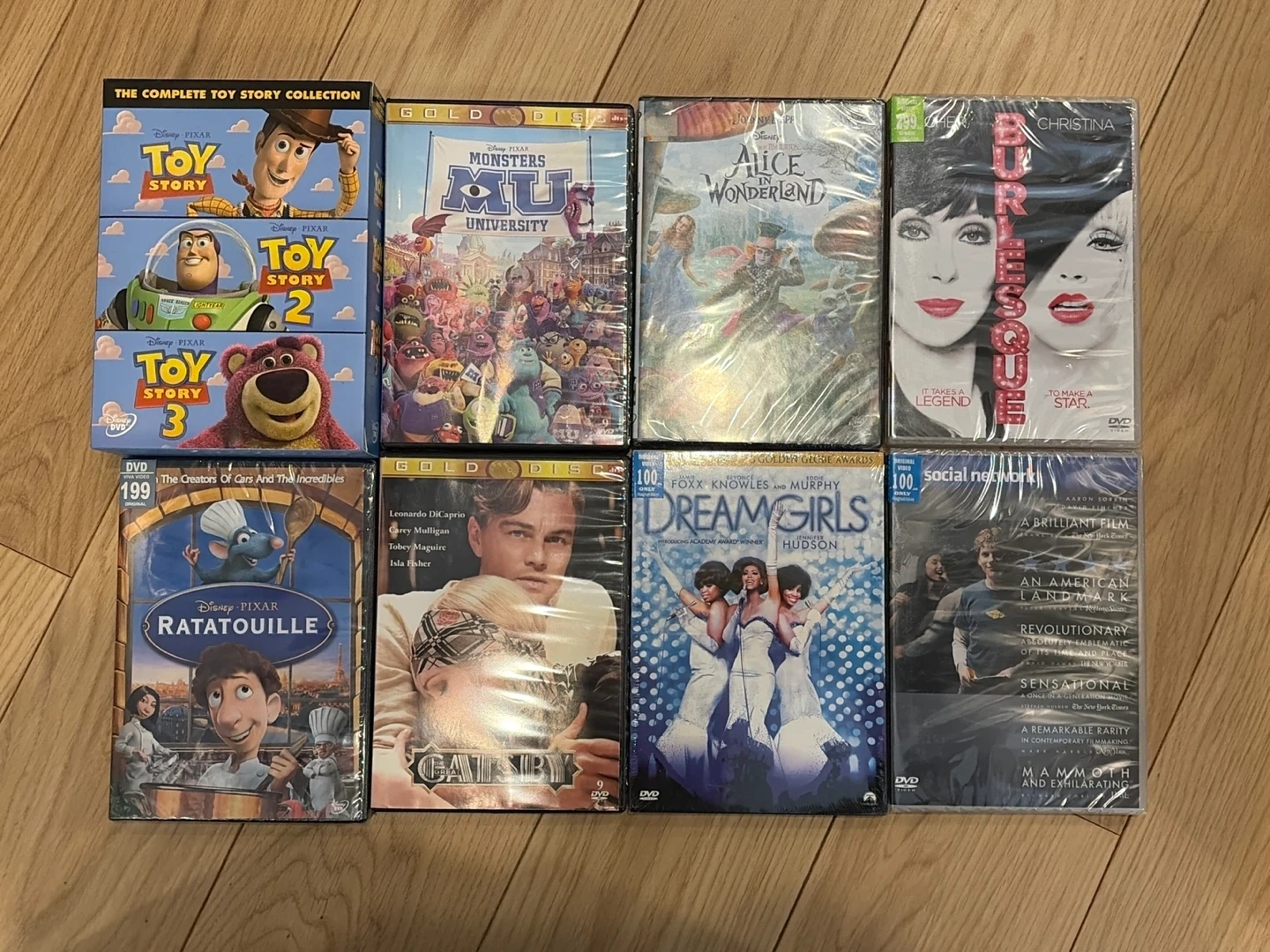 ★他商品購入の方へのお譲りします。 海外製DVDのまとめ売りです。英語の勉強のために購入しましたがあまりみませんでした。 半分以上未開封。海外製なので映るかどうか分かりません。 ・トイストーリー コンプリートコレクション ・モンスターズ・ユニバーシティ ・華麗なるギャツビー ・レミーのおいしいレストラン(未開封) ・アリス・イン・ワンダーランド(未開封) ・ドリームガールズ(未開封) ・バーレスク(未開封) ・ソーシャル・ネットワーク(未開封) 中古品であることをご了承ください。