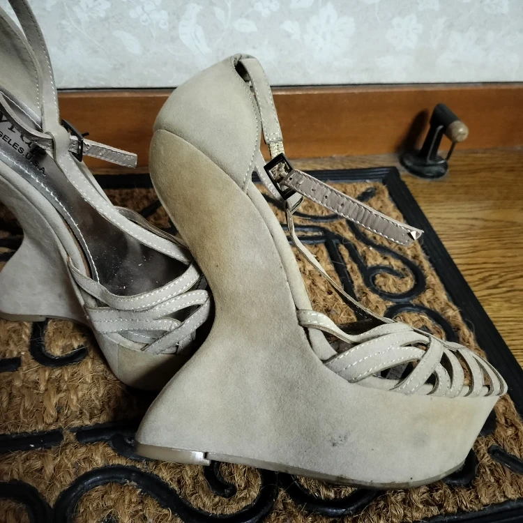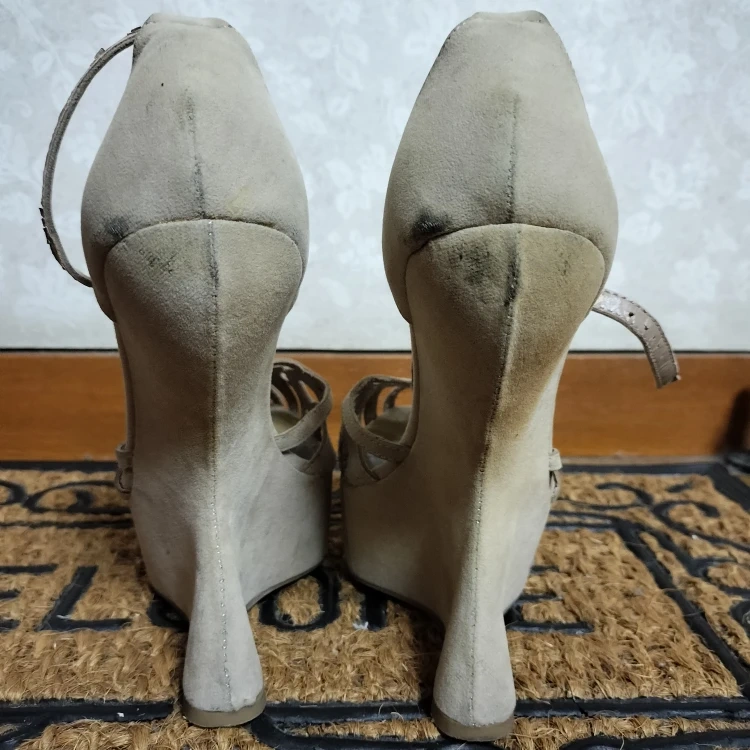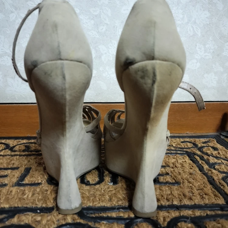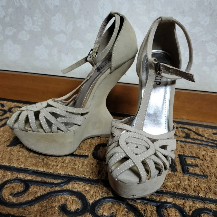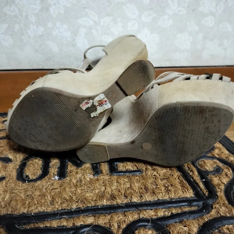 ベージュのスエード風ウェッジサンダル、ストラップ付きオープントゥデザインでスタイリッシュ。 - 色: ベージュ - スタイル: ウェッジサンダル - デザイン: ストラップ付きオープントゥ - 素材: スエード風 - ヒールの高さ: 高ヒール サイズ: 36 23.5cmのサイズの私の足は入りました。 擦れなど傷や色の変化があります。 長期保管の為、ご理解いだける方のみお願い致します。 ご覧いただきありがとうございます。