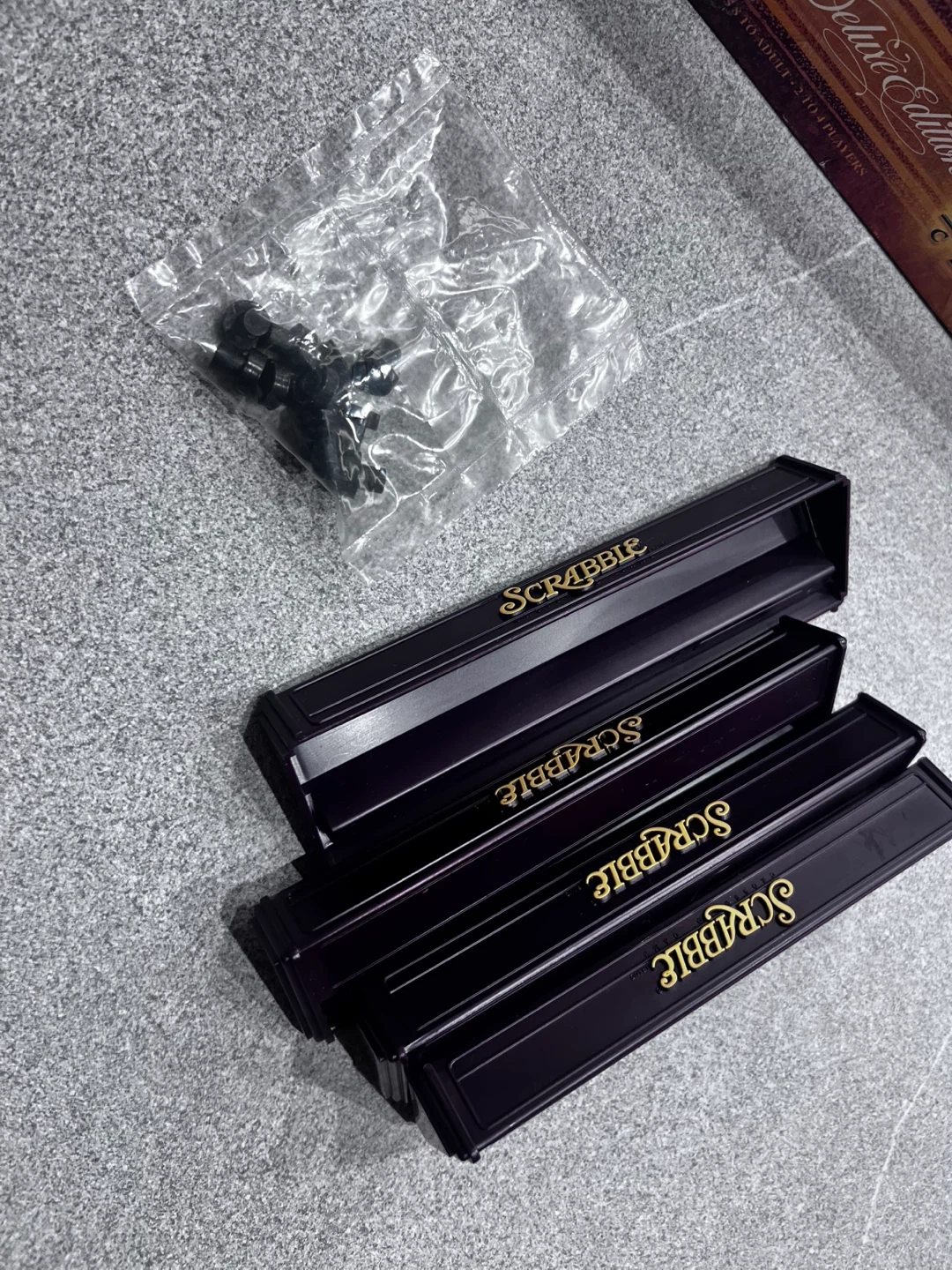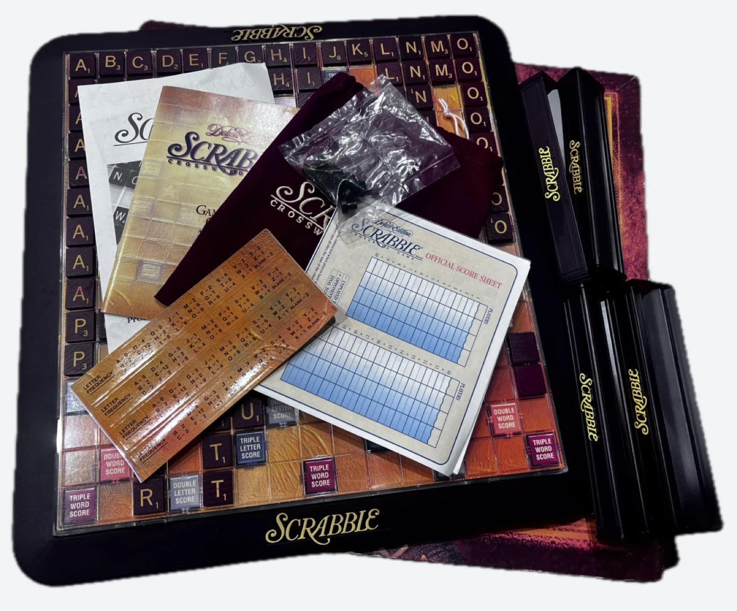 ハズブロのスクラブル デラックスエディション ボードゲームです。 【状態】 ・箱に傷みあり ・付属品は砂時計が有りません。 ・その他全てあります。 ・自宅に長期保存しておりました。 ・2回使用しました。 ・用紙未使用 ・5枚目の写真の部品未開封 中古品であることをご了承ください。