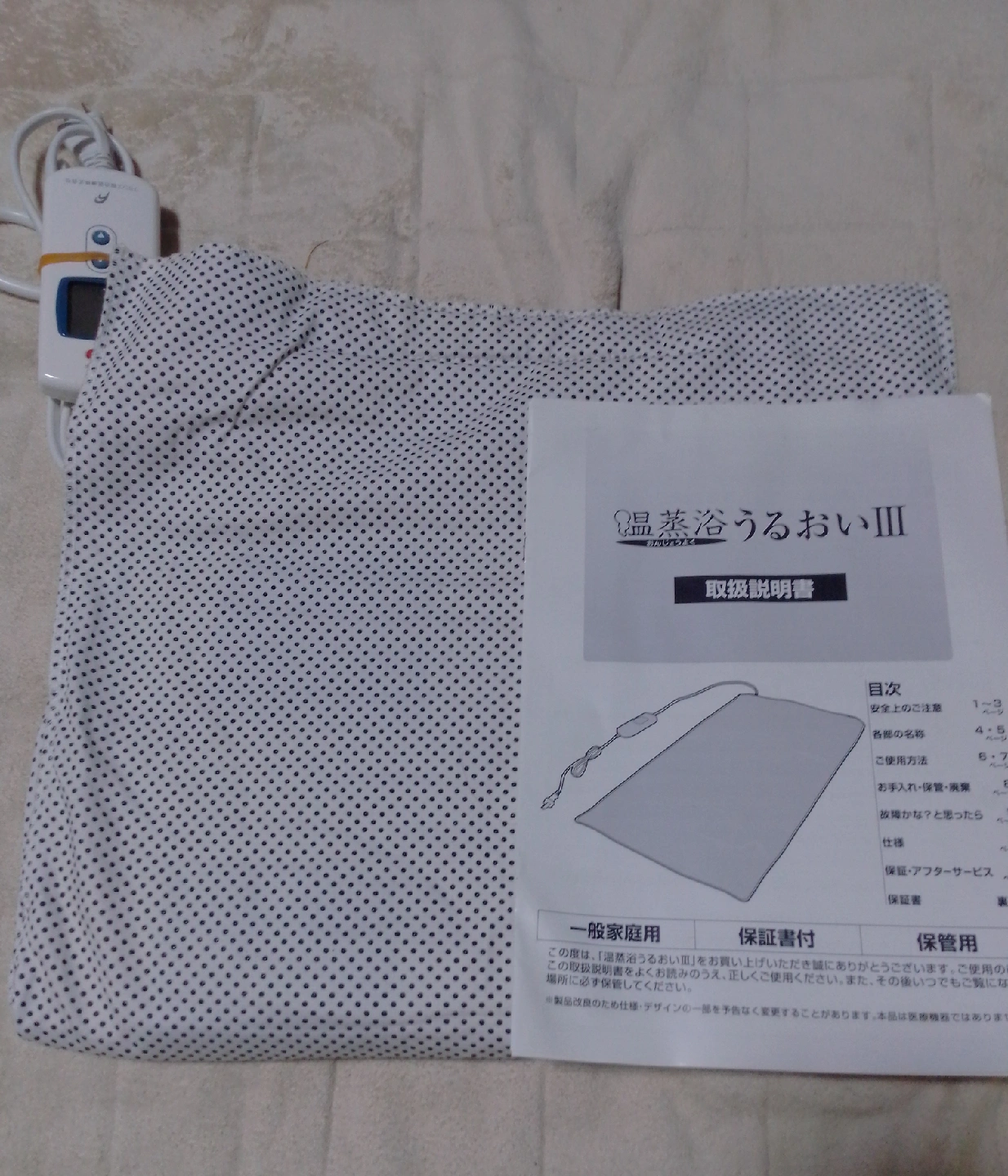 フランスベッド 温蒸浴うるおいIIIです 【情報】 商品:温蒸浴温蒸浴うるおい」の主な効果は「蒸気温熱」と「遠赤外線」による 体の芯から温まる温浴効果です。こ れにより、血行促進、疲労回復、筋 肉の緩和、発汗によるデトックス効 果が期待できます。また、天然サン ゴ砂を使用しているため、肌に優し い温熱を均一に伝えられる点も特徴 です。 【状態】 昨年新品購入し冬時期のみ使用。 箱無し。 説明書有。 カバーやや布玉有。