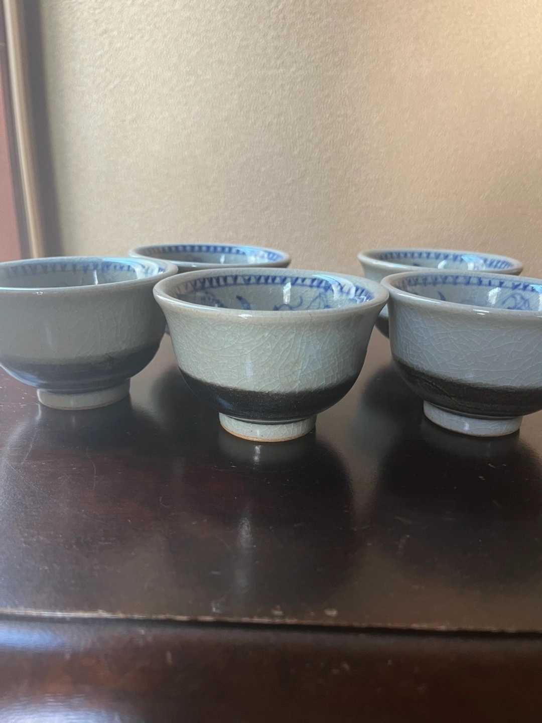 和皿 猿爪 井の平窯 金彩 鶴と波