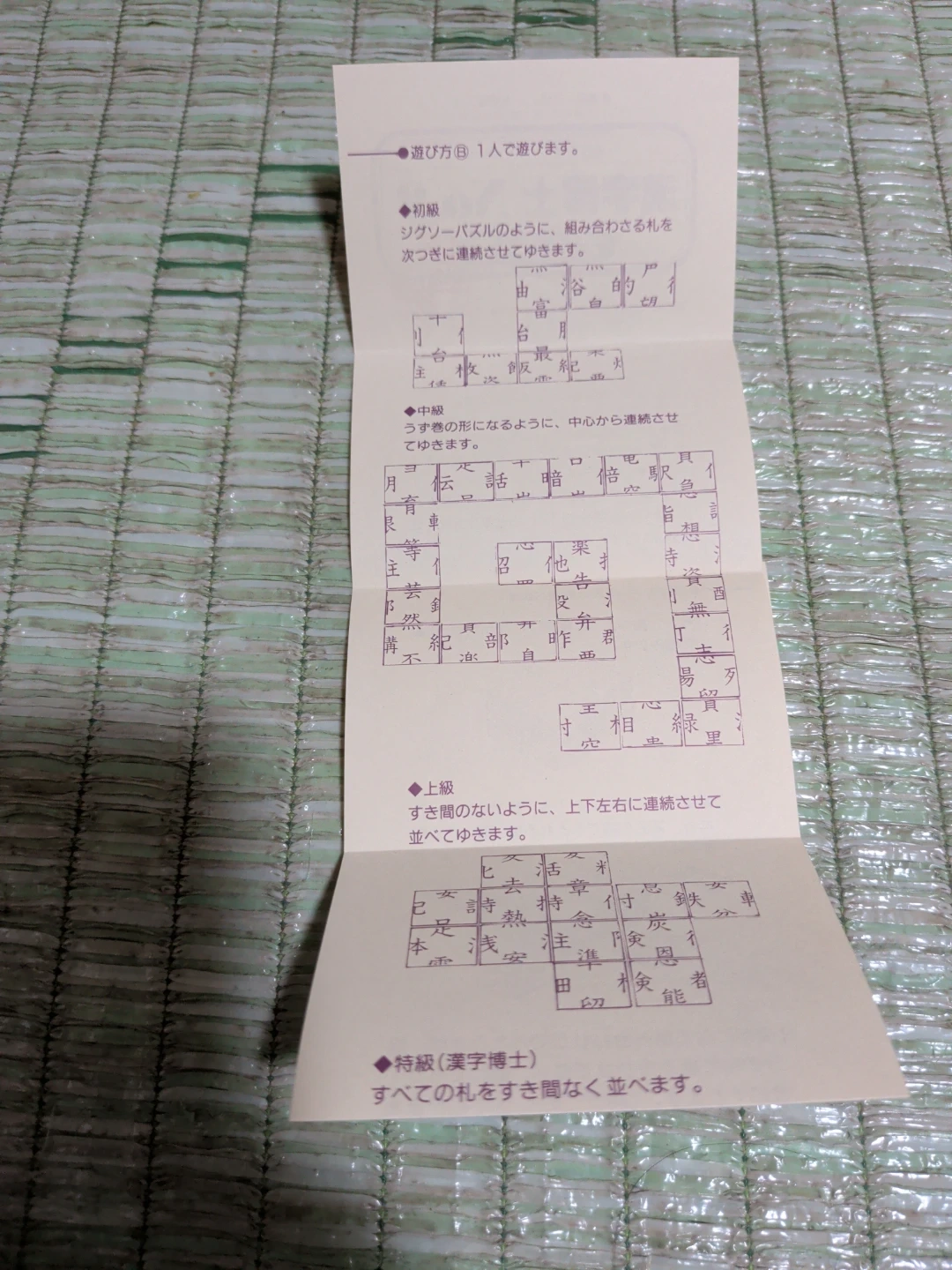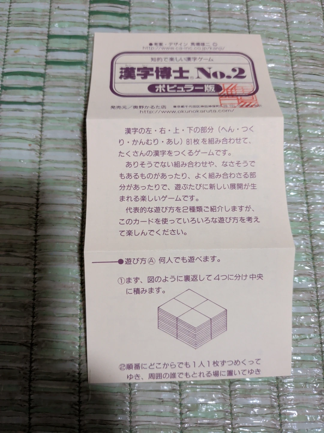 漢字博士 No.2 ポピュラー版です。1人でも複数でも遊べるカードゲーム頭の体操にいかがですか? ・知的で楽しい漢字カードゲーム ・考案、デザイン:馬場雄二 ・箱に傷、使用感ありますがカードは綺麗です 中古品であることをご了承ください。