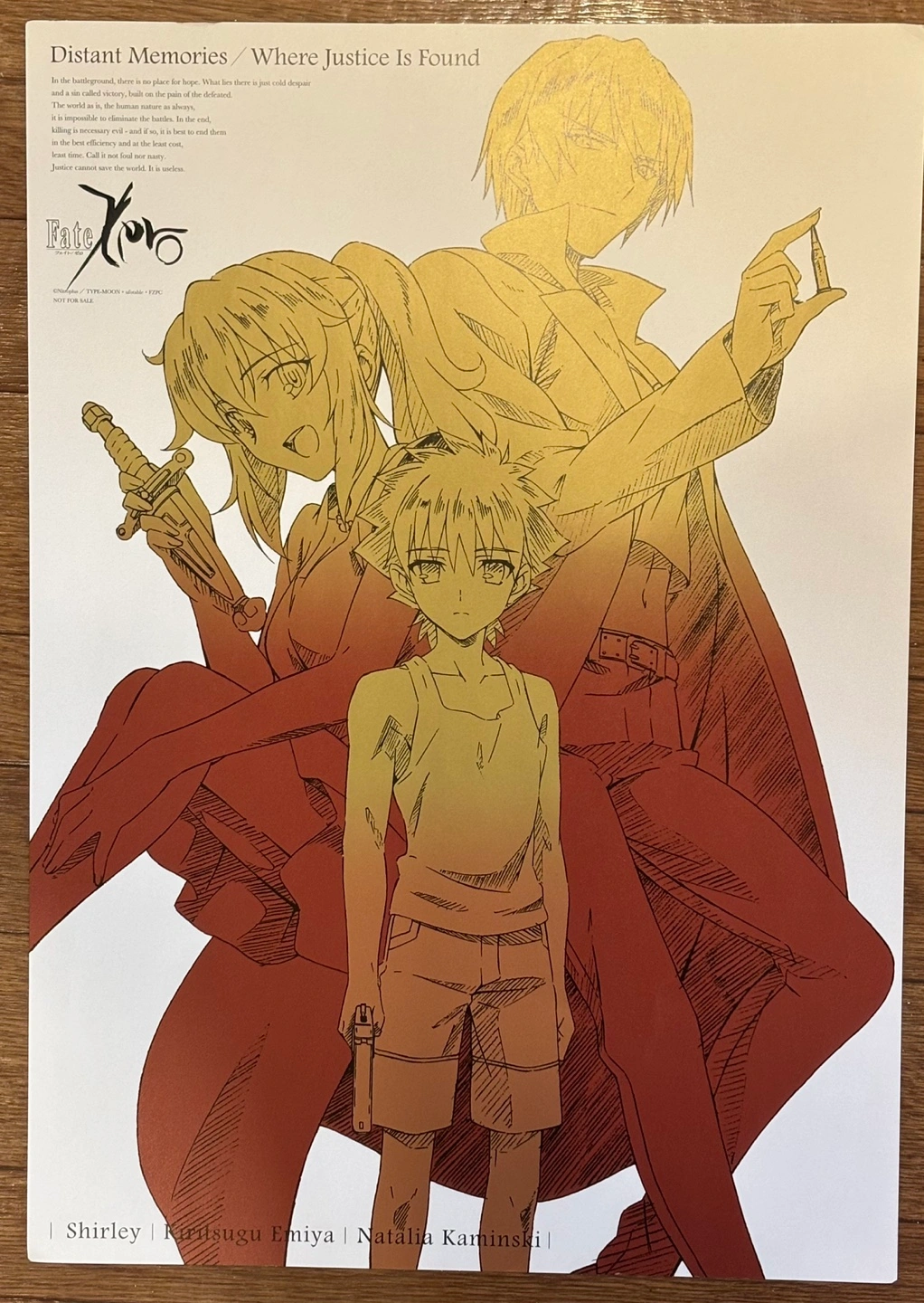 ufotableの大人気TVアニメ『Fate/Zero』A3サイズ特大ポスターです。令呪の形のエンボス加工が施されており、特別感があります。 現在ほぼどこでも取引されていないとても貴重なものです。 新品未使用ですが、写真最後のように一部ダメージがあります。 他サイトでも販売しているため、そちらが売れ次第こちらは事前告知なしに落とさせていただきますので、気になる方はひとまずご連絡をお願いいたします。 在宅勤務でほぼ自宅にいるため、平日でも2つほど受け渡し日の候補をご提示いただけましたらおそらく決められるかと思います。気軽にご相談ください。 受け渡し場所はドラマ『silent』の聖地、世田谷代田駅の改札越しのお渡しも可能です。(改札を出ずとも大丈夫です) あるいは『代田八幡神社』の無料駐車場前でしたらとてもありがたいです。 環七の大通り沿いなので、ご不安も少ないかと思います。 東京都世田谷区代田3丁目57−1 #アニメ #グッズ #Fate #FGO #アニメポスター #ポスター