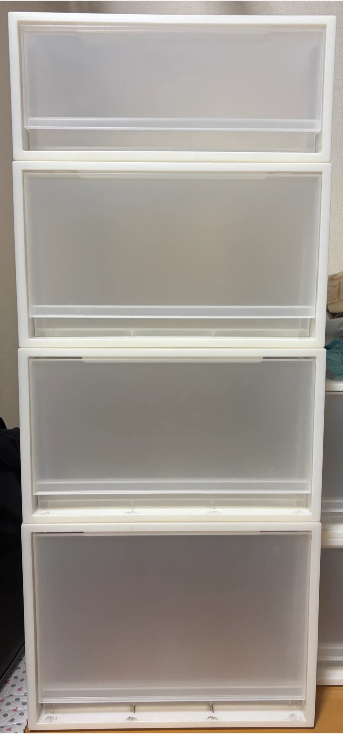 無印良品の収納ケースです。 4個セットで出しますが、必要な分だけでもご購入可能です。 ただいま小と大のみ残ってます。 1番上 小1個 35*65*16.5 2、3番目 中2個 35*65*22 中の2個は 売れ切れです。 4番目 大1個 35*65*29 個別 ・全体的にきれい ・目立つキズなし ご不明点があればお気軽にご連絡ください。