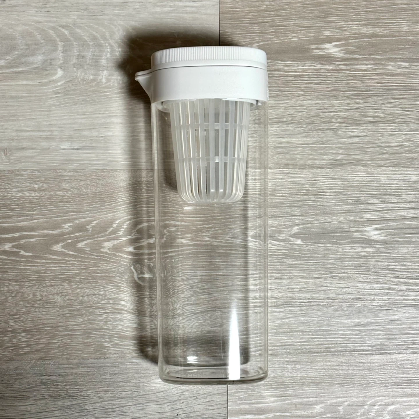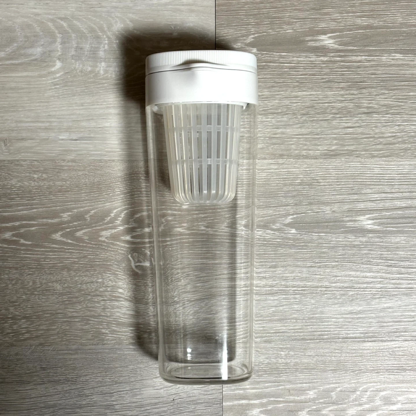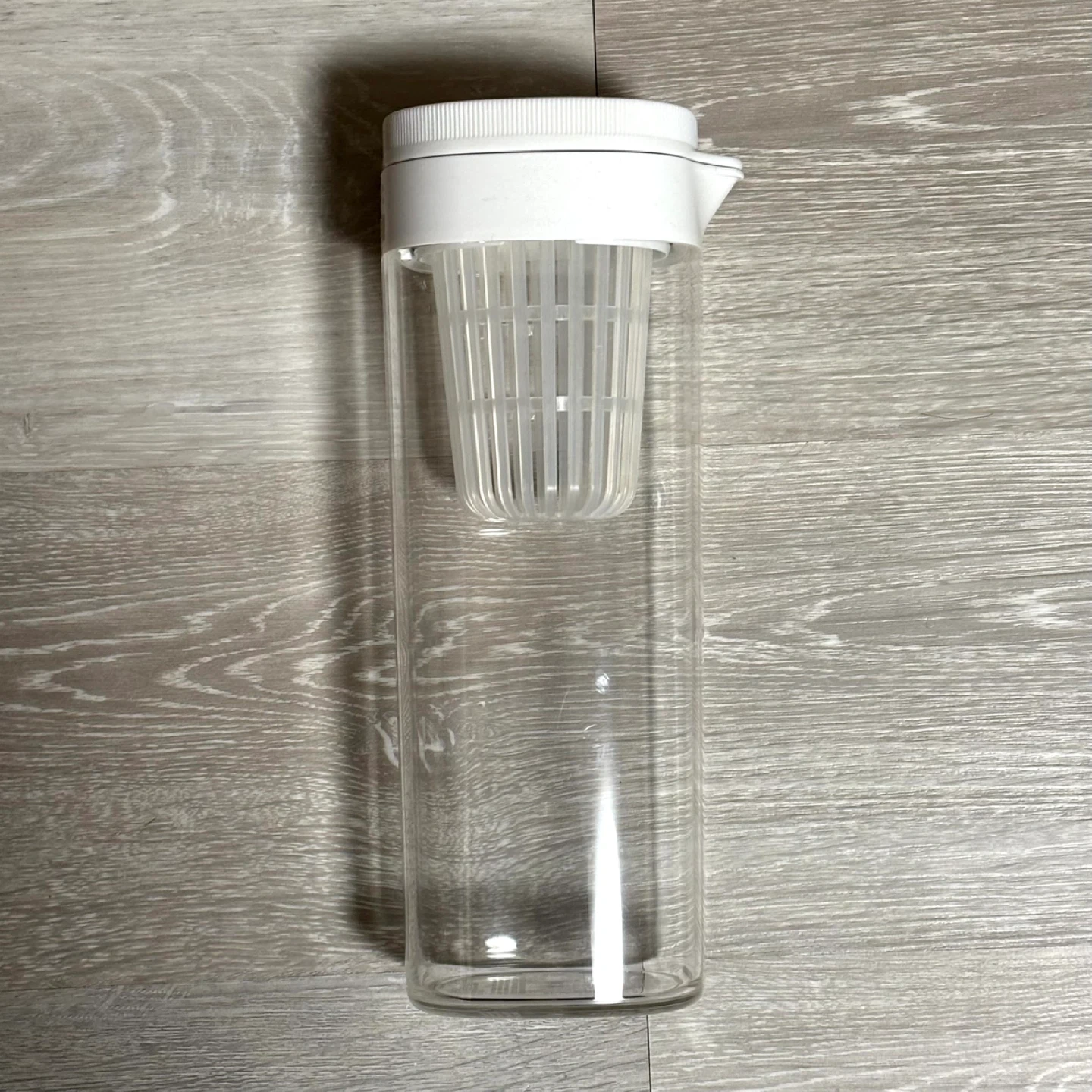 無印良品のストレーナー付き冷水筒です。 スリムなデザインが特徴です。 【状態】 ほとんど使わずに保管しておりましたので、綺麗かと思いますがスレや小傷はありますので、中古品とご理解の上、ご購入をよろしくお願いいたします。 【情報】 ブランド:ムジルシリョウヒン 容量:約1L 外寸:約9×奥行10.5×高さ25.5cm 素材:本体 アクリル樹脂、蓋・ストレーナー ポリプロピレン、パッキン シリコーンゴム _________________ 受渡時間 : 水曜12時〜21時 土日19時〜21時 (上記以外は要相談) 受渡場所 : 上野駅(上野広小路口のロクシタン前) 御徒町駅(南口のローソン前) 上野広小路駅(A1出口のパルコヤ前) 秋葉原駅(昭和通り改札のヨドバシ前) _________________