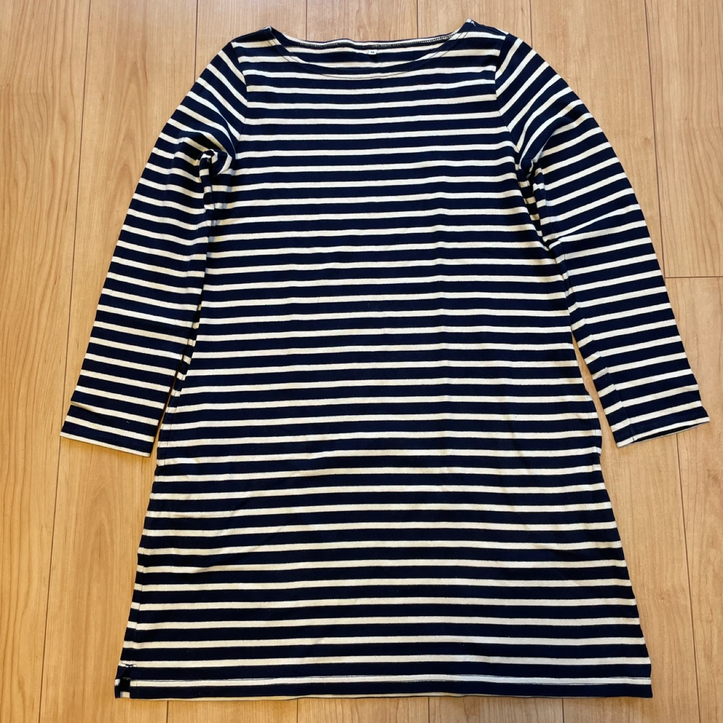 嫁さんの着用しなくなった衣類を 欲しい方にお譲りし ます。 朝晩肌寒くなってきたこの季節に いかがでしょうか。 無印良品 紺×白(オフホワイト) 長袖 ボーダー ワンピース サイズ M 厚手の生地感です。 両サイドポケットあり。 程度良好な一般的な程度良好な古着だと思いますが、ご理解ある方のみご検討ください。 我が家にはペット、喫煙者はおりません。 プロフィールご参照ください。 ボーダー柄のワンピースです。 ・サイズ:M ・素材:綿100% ・色:ネイビー、ホワイトのボーダー ・ポケット付き ・使用感少なめ 中古品であることご了承ください