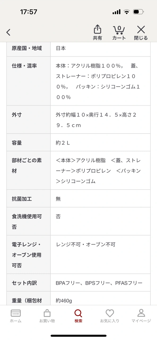 無印良品の透明プラスチック製容器です。 スリムなデザインが特徴です。 ほとんど使わずに保管しておりましたので、綺麗かと思いますが中古品に伴うスレや小傷はありますので、中古品とご理解の上、ご購入をよろしくお願いいたします。 ・容量:約2L ・材質:本体 アクリル樹脂、蓋・ストレーナー ポリプロピレン、パッキン シリコンゴム ・耐熱温度:70℃ ・耐冷温度:-20℃ ・電子レンジ、オーブン使用不可 中古品であることをご了承の上ご購入ください。 お取引の場所と時間を固定いたしましたのでご確認をお願いいたします。 _________________ 受渡時間 : 水曜12時〜21時 土日19時〜21時 (上記以外は要相談) 受渡場所 : 上野駅(上野広小路口のロクシタン前) 御徒町駅(南口のローソン前) 上野広小路駅(A1出口のパルコヤ前) 秋葉原駅(昭和通り改札のヨドバシ前) _________________