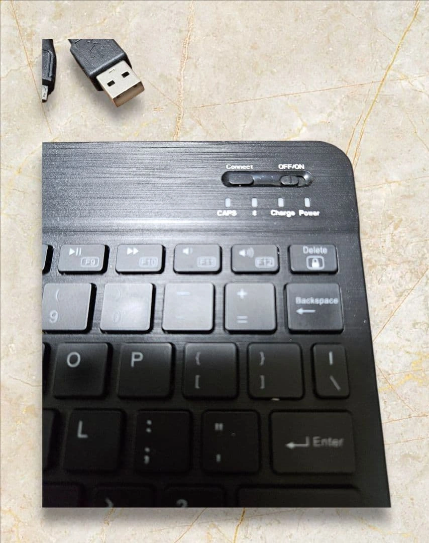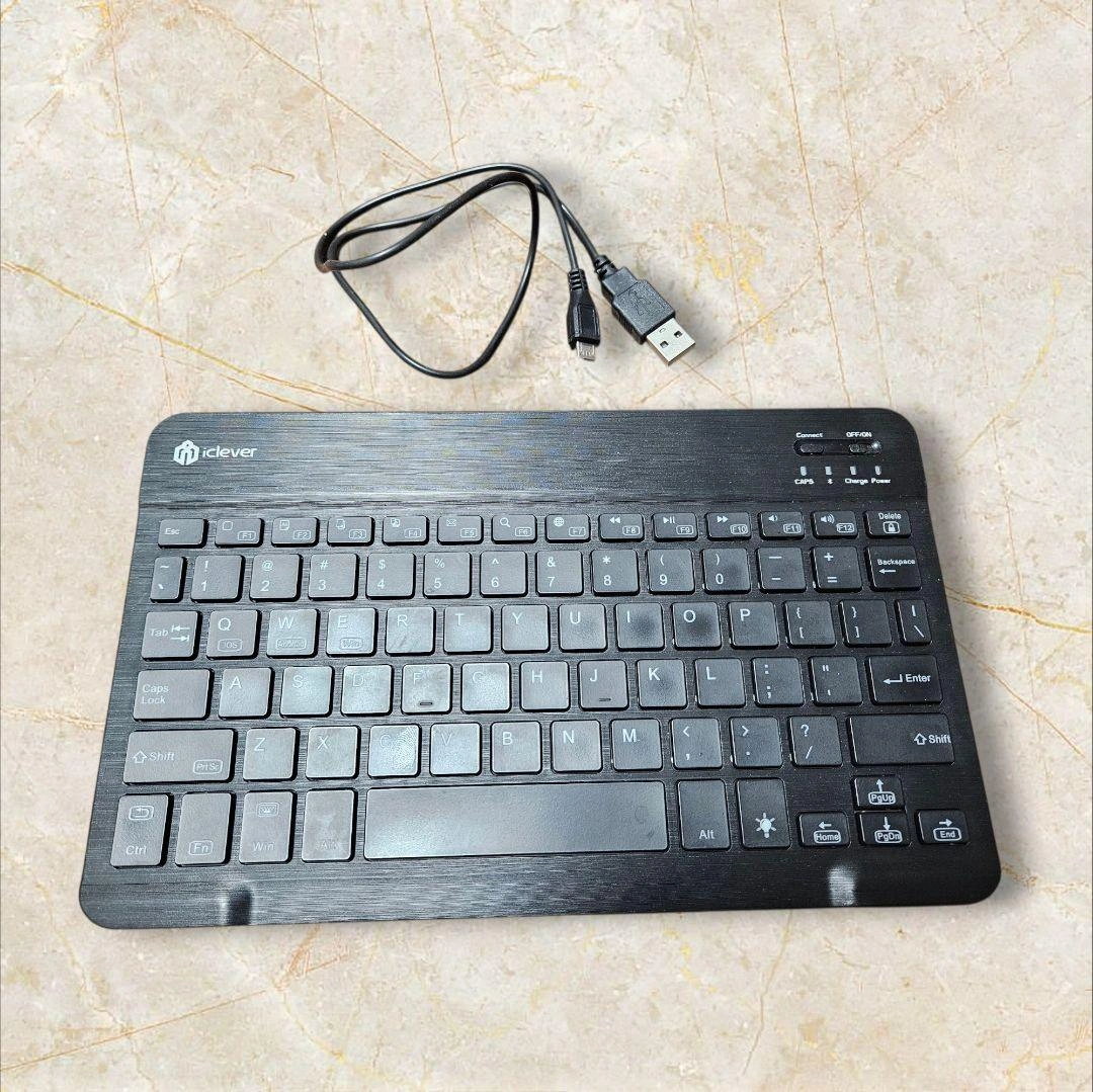 充電式のiClever USBキーボードです。ブラックでON/OFFスイッチ付き。 充電ケーブルが付属します。 動作確認済みです。 自宅保管していました。 状態が気になる方は、ご質問く ださい。 - ブランド: iClever - 接続方式: USB接続 - 色: ブラック - 特長: 充電式、ON/OFFスイッチ、Caps Lockインジケーター - 付属品: USBケーブル 接続形式...ワイヤレス(Bluetooth) ご希望の方はお気軽にご連絡ください。