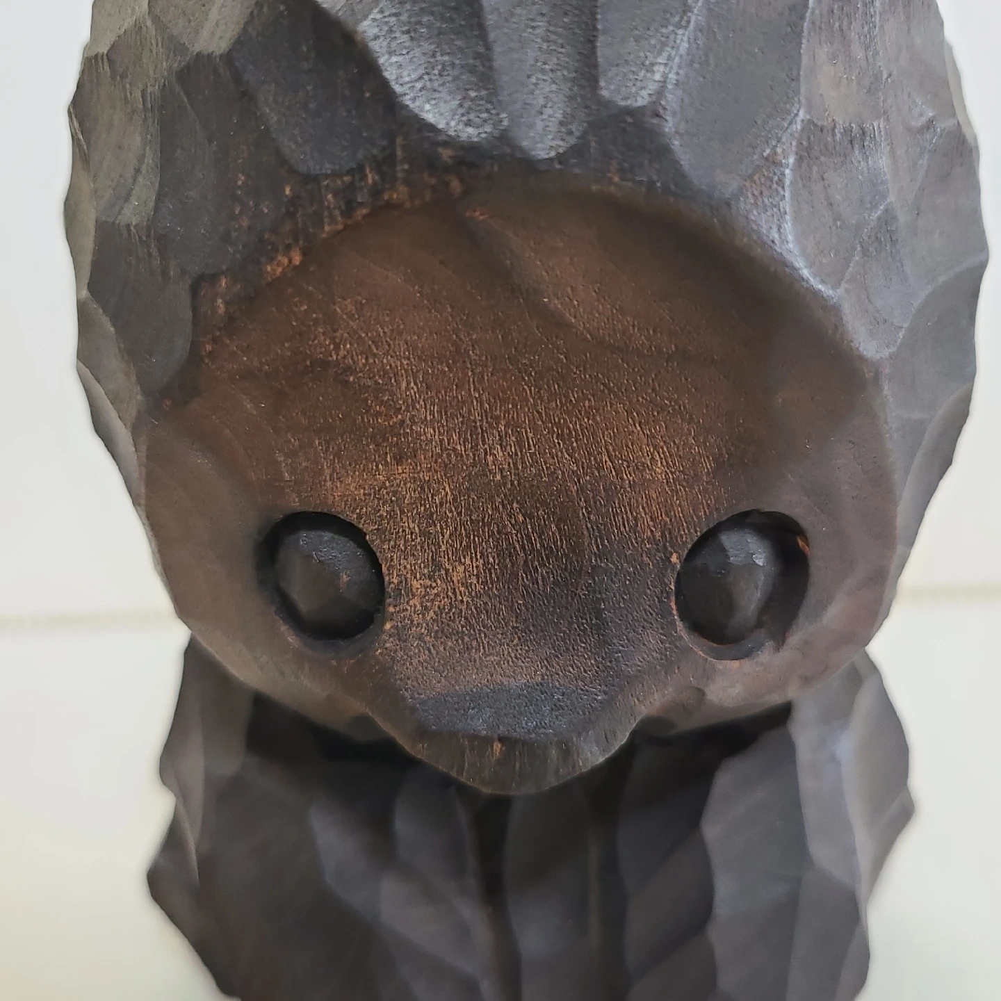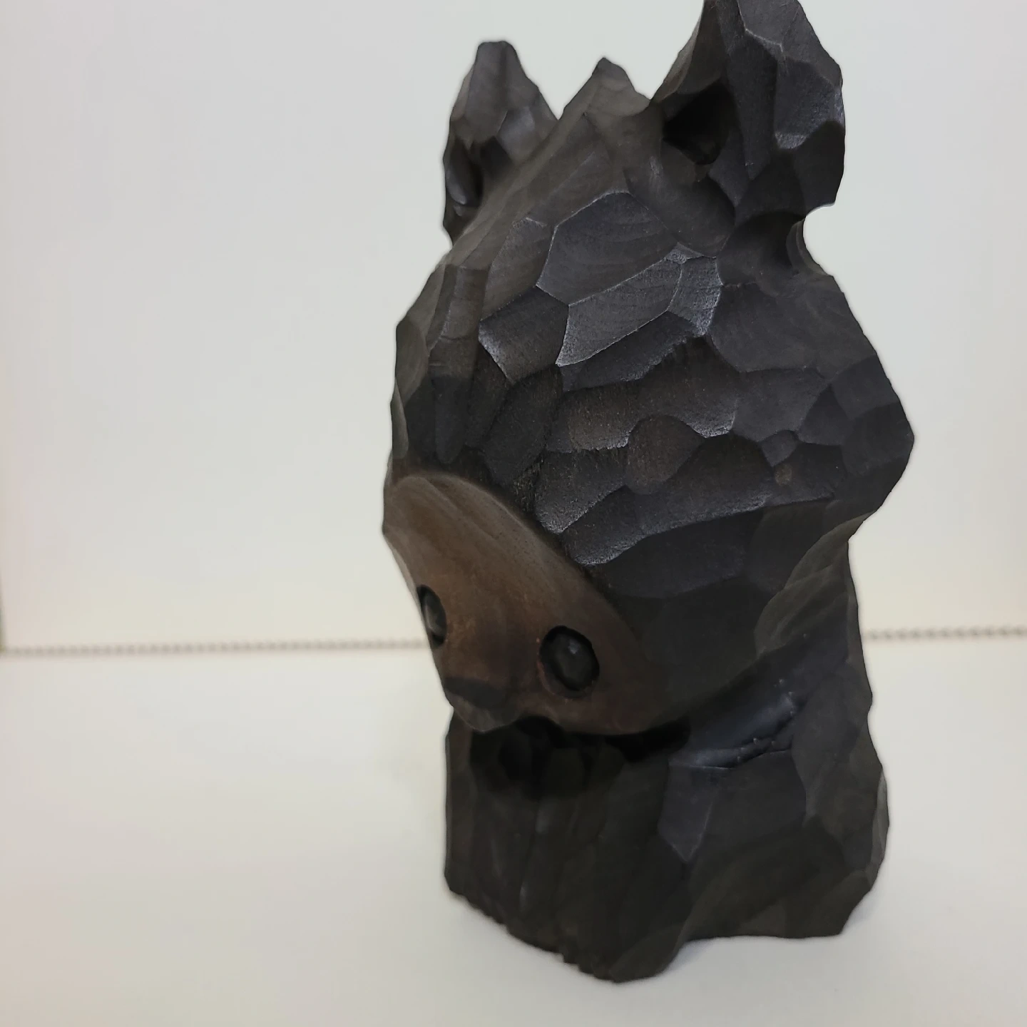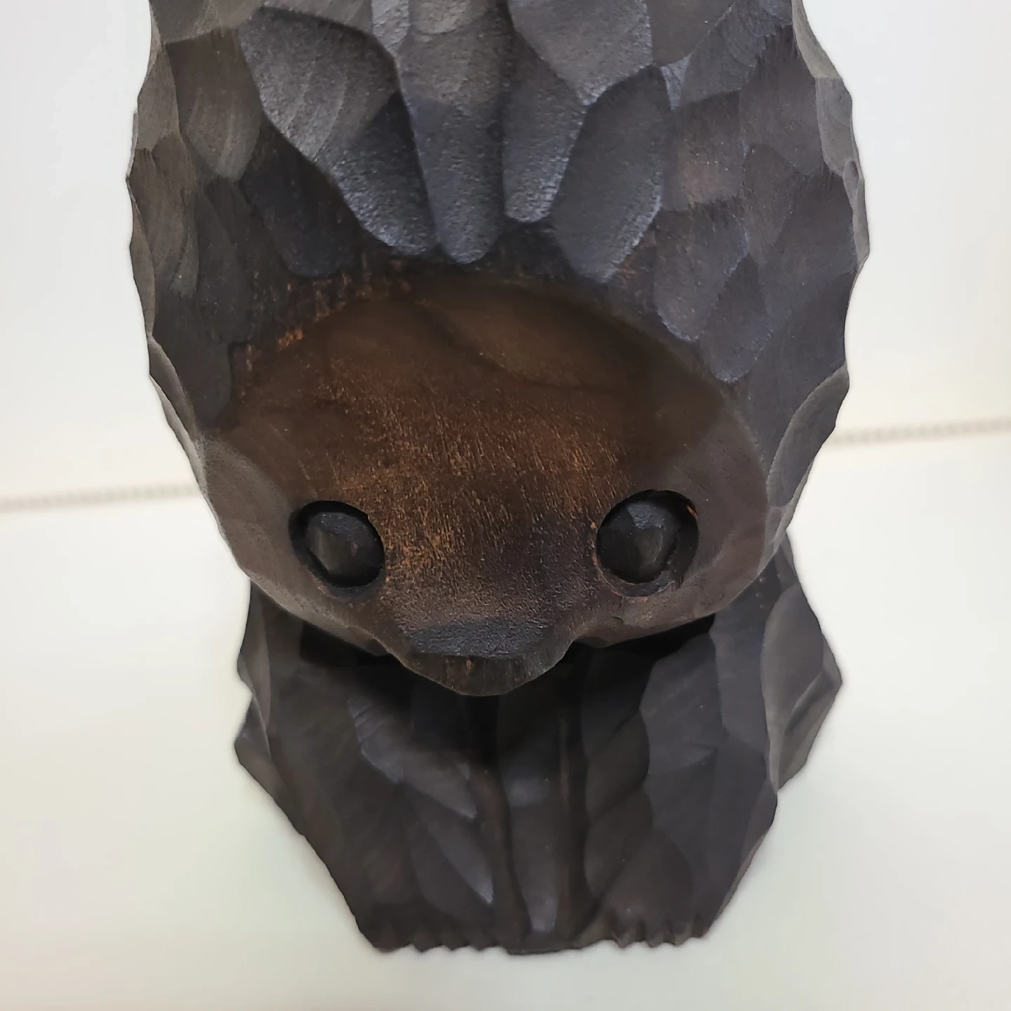 クマの木彫り置物です ・色素材: 木製 - デザイン: 動物(クマ) - 色: ダークブラウン - 特徴: 手彫りのテクスチャー - サイズ: 約18cm 高さが約18cm 重さが400g ※個人採寸のため誤差があります。 古くてとってもかわいいお顔をした可愛い熊ボッコです。 取りきれない汚れや若干キズがありますが、主観ですが、比較的状態はいいと思います。:黒/茶色 ・素材:木 ・状態:良好 中古品であることご了承ください