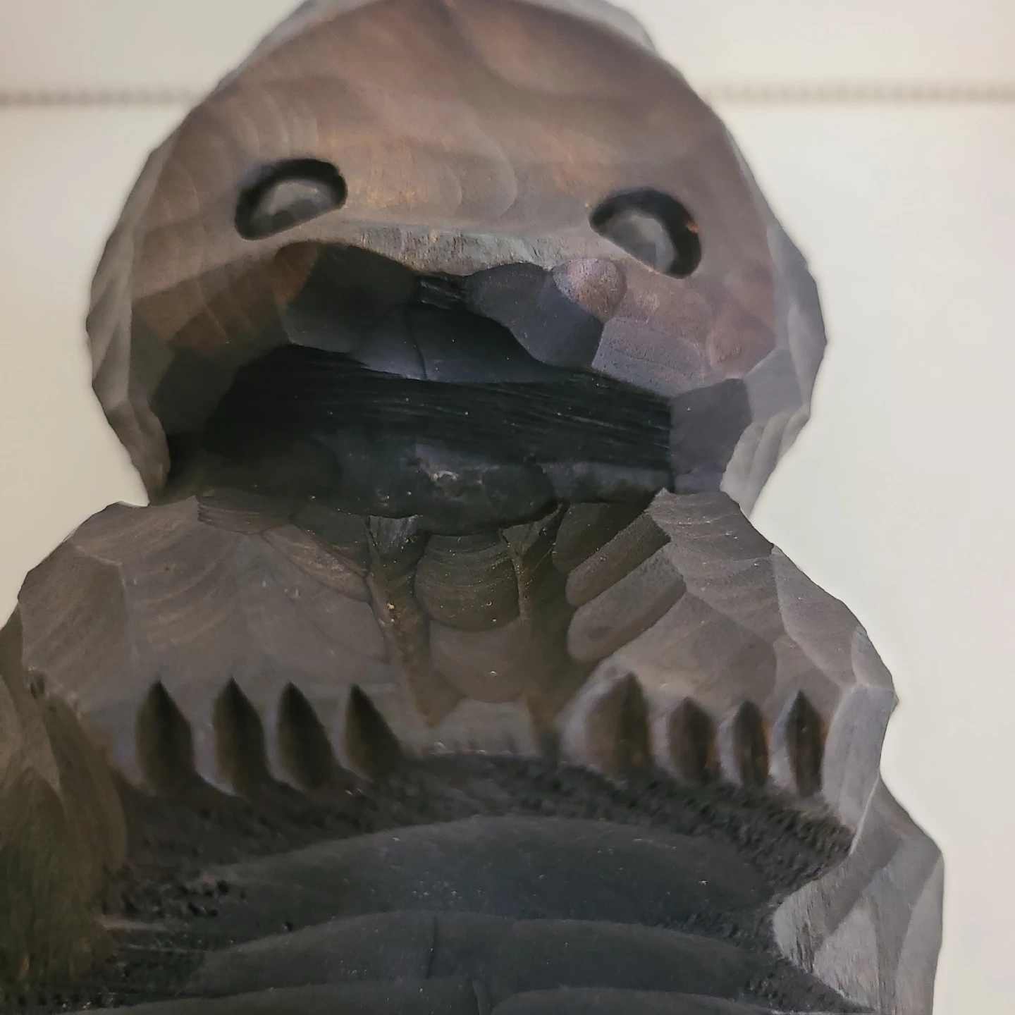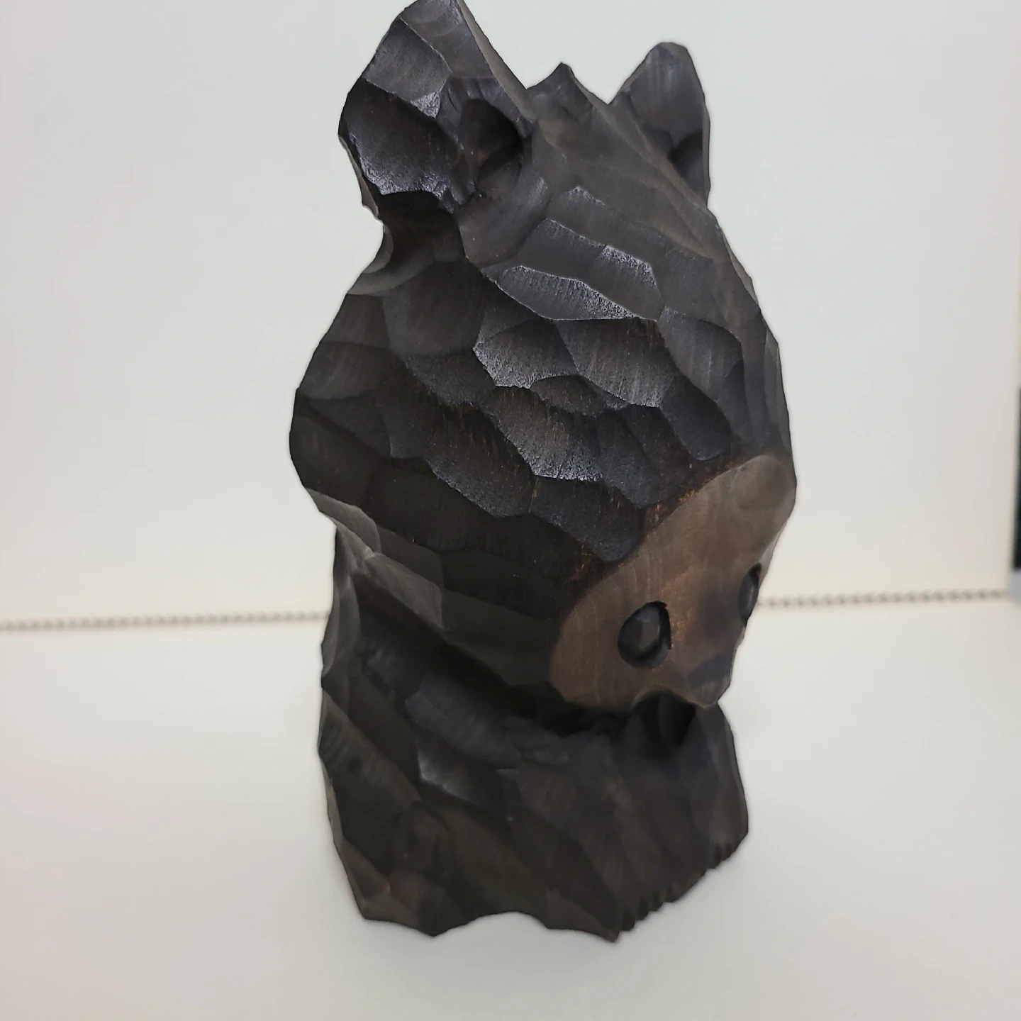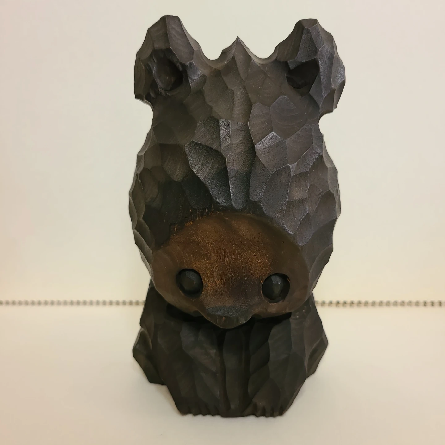 クマの木彫り置物です ・色素材: 木製 - デザイン: 動物(クマ) - 色: ダークブラウン - 特徴: 手彫りのテクスチャー - サイズ: 約18cm 高さが約18cm 重さが400g ※個人採寸のため誤差があります。 古くてとってもかわいいお顔をした可愛い熊ボッコです。 取りきれない汚れや若干キズがありますが、主観ですが、比較的状態はいいと思います。:黒/茶色 ・素材:木 ・状態:良好 中古品であることご了承ください