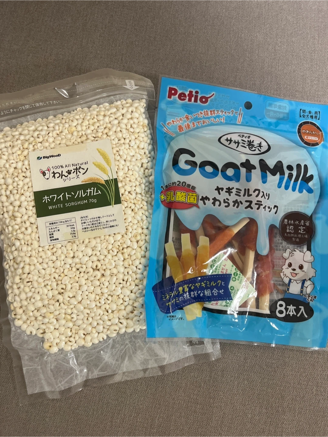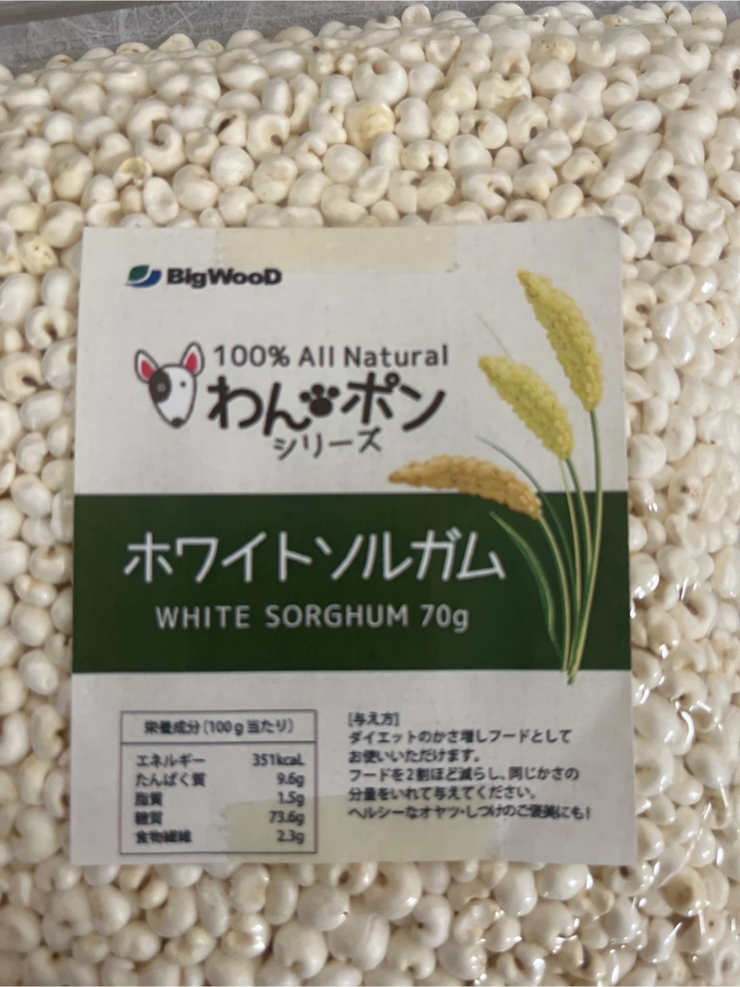 【犬用おやつ】ダイエット用わんポン、ペティオササミ巻き 2つおまとめ価格です。 片方だけ欲しい方はコメントください。 他のものもさらに一緒にもらっていただけたらお値引きいたします。 ▪️ペティオササミ巻き 280円相当 →ジッパー付き ▪️ビッグウッド わんポン 1000円相当 →密封、ジッパー付き 備考 ホワイトソルガムは、イネ科タカキビの一種です。必須アミノ酸(リジン・ロイシン・イソロイシンなど)を含みミネラルが豊富です。 鉄は白米の約4倍、カルシウムは白米の約2倍、マグネシウムは白米の約5倍です。またビタミンB群、食物繊維が豊富なスーパーフードと言われています。 #犬用品 #ビッグウッド #犬のおやつ #犬のダイエット