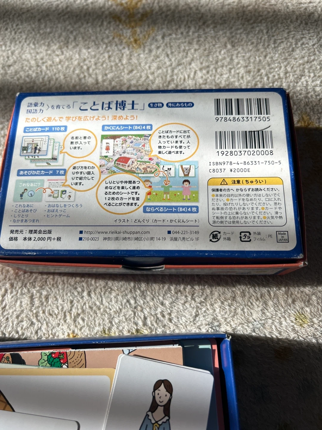 ホーム横浜市 港南区のフリマ横浜市 港南区の本・ゲーム・エンタメ野庭町の本・ゲーム・エンタメ理英会出版 ことば博士 カード教材ゆり野庭町38.4℃あたたかさ理英会出版 ことば博士 カード教材本・ゲーム・エンタメ · 1,300円理英会出版のカード教材です。 ・「ことば博士」のカード2箱セ ット ・対象年齢:3歳〜 ・110のことばを収録 ・箱に少し傷みあり 中古品であることをご了承ください。チャット0·お気に入り0·閲覧数1アプリで問合せ/購入申請取引はアプリでのみ可能です。ダウンロードしてご利用ください。ゆりさんの出品すべて見るウルトラマン フィギュア 3体セット1,450円野庭町おもちゃ300円野庭町おもちゃ500円野庭町ドラえもん ステップアップパソコン2,500円野庭町ゲームソフト7,600円野庭町理英会出版 ことば博士 カード教材1,300円野庭町人気商品すべて見るウルトラマン フィギュア 3体セット1,450円野庭町ディズニーリゾート ミニー カチューシャ 赤 スパンコール400円笹下【美品】鴻上尚史 書籍 孤独と不安の レッスン|「空気」と「世間」 鴻上尚史 2冊まとめ売り400円最戸「転職2.0」 日本人のキャリアの新・ルール300円上永谷町初代タマゴッチ6,000円港南Baby Park 絵本1,000円東芹が谷クモン ひらがな、すうじ おけいこ500円野庭町マイリトルポニー おもちゃ まとめ売り250円上永谷町ギター7,000円上永谷町ドラえもん ステップアップパソコン2,500円野庭町