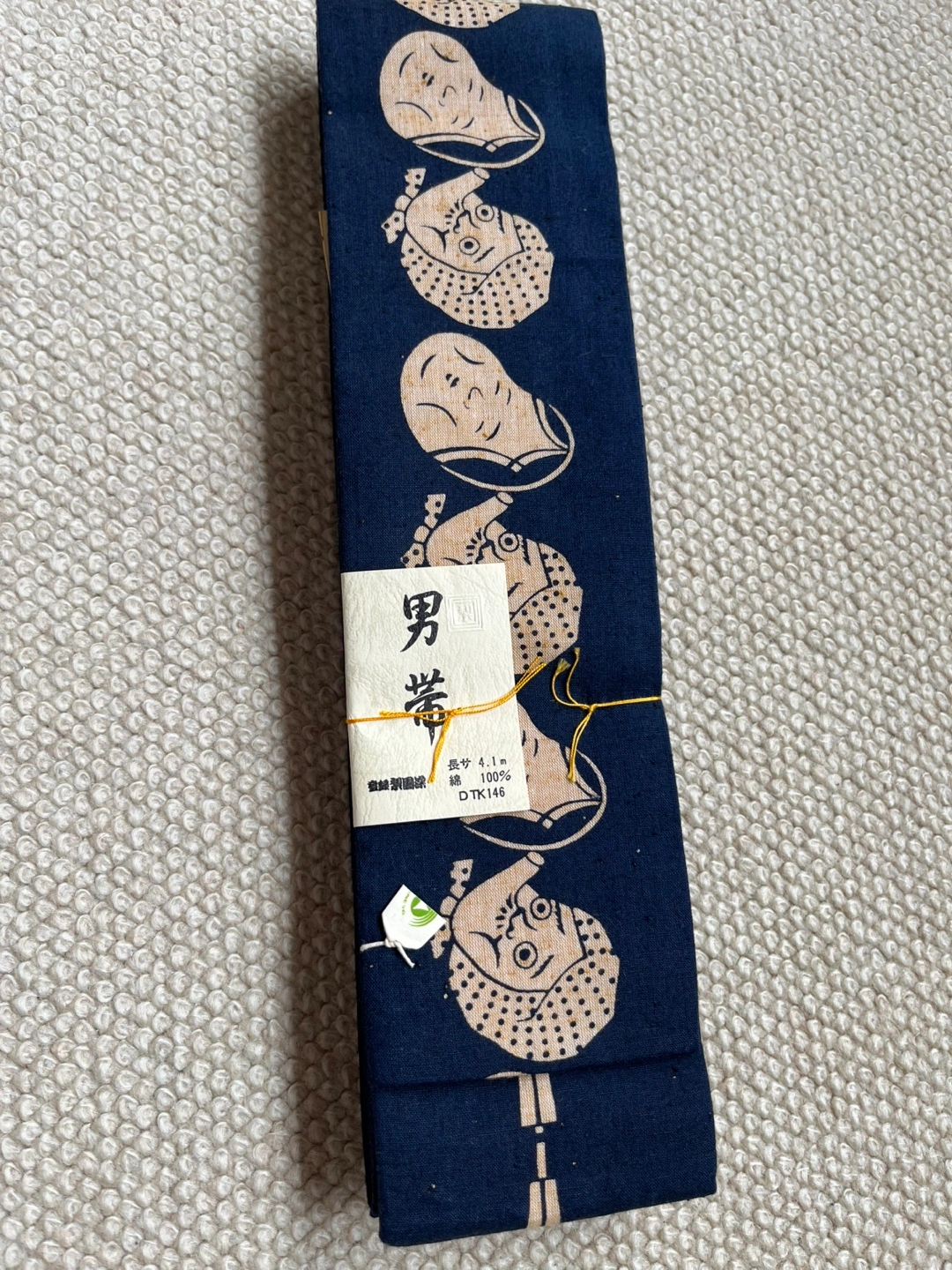 紺色の角帯。 長さ約4.1m、綿100%。 未使用の状態で保管。 男性用の着物の帯です。 中古品であると言う事をご了承のうえご購入下さい。 受け渡しは、祖師ヶ谷大蔵駅周辺で、お願い致します。