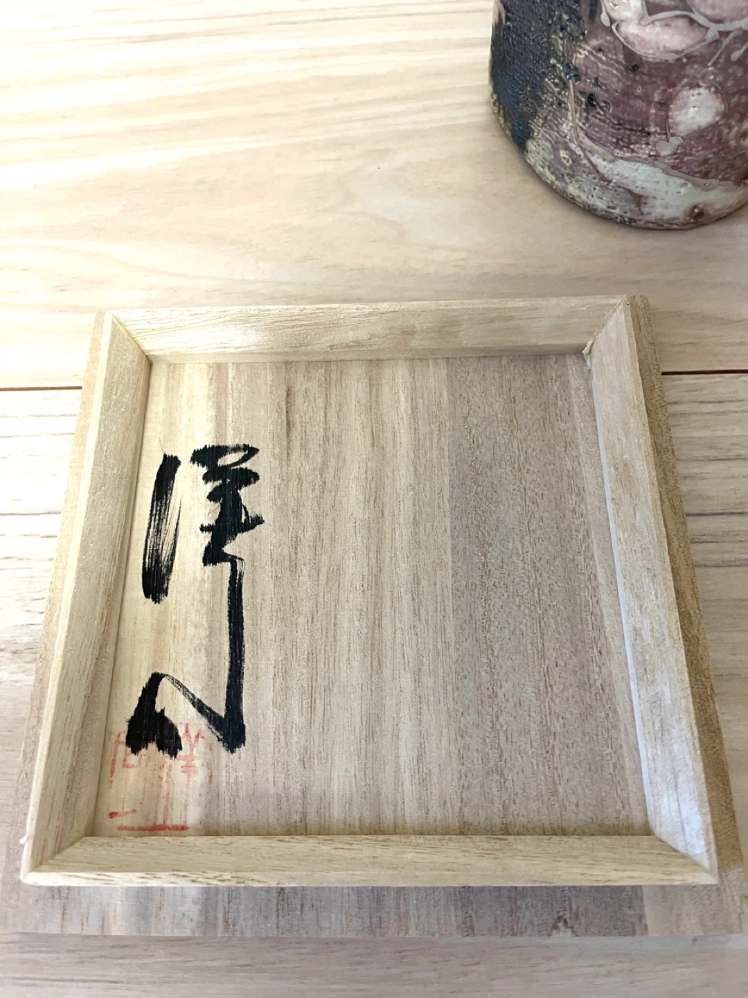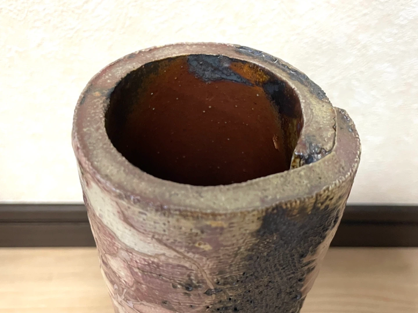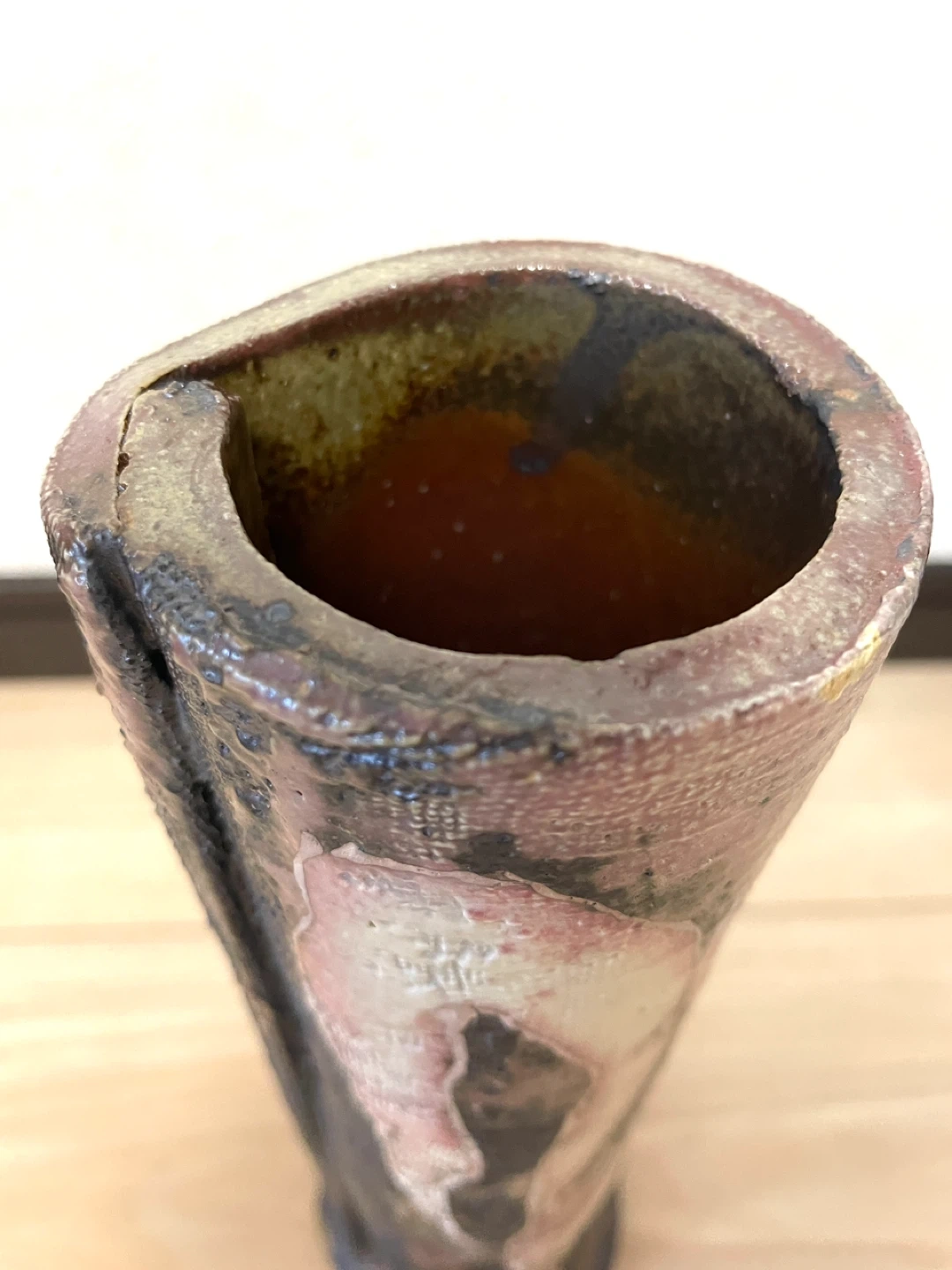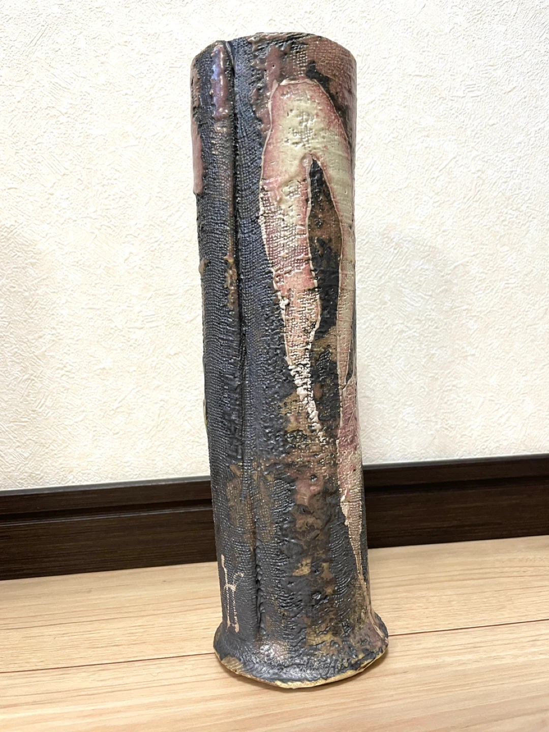 益子焼 筒花生 三宅洋司 造 四方桟 真田紐 木箱