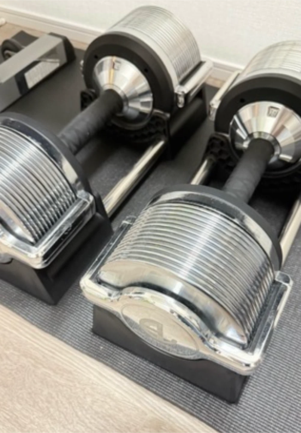 可変式ダンベル32kg 2個セットです。 ライシンの可変式ダンベルと同じで、ブランドだけECOBELLという名前になっています。 詳細は以下。 ttps://www.fun-garage.fit/products/detail/481 ※hを先頭に追加してください。 定価は82500円 使い方はFLEXBELL同様にとって部分を回すとプレートが脱着され重さを変えられます。 1kg刻みでフレックスベルの2kg刻みや4kg刻みよりも細かく設定できます。 杉並区付近(千葉、埼玉、神奈川、東京)でしたらお運びいたします。 遠方の方はご遠慮ください。 コメントいただければお運びできるか返信します 個人で2年程度使用しました。 【こんな方におすすめ】 ・ジムに行く時間がない。 ・隙間時間にトレーニングしたい。 ・ダンベルが欲しいけど収納場所に困る。 ・もっと手軽にハードウェイトトレーニングしたい。 ・シェイプアップしたい。 ・健康的な体を手に入れたい。