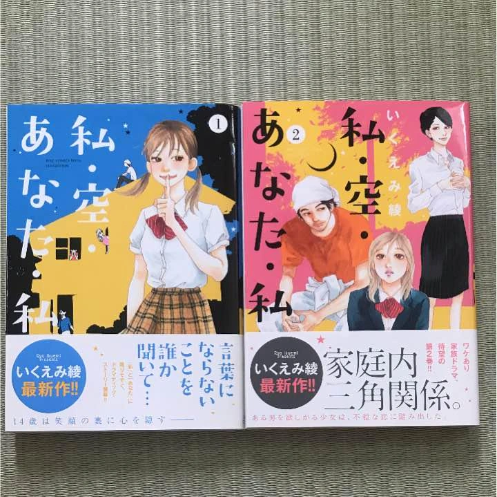 「私・空・あなた・私 1・2」 定価: ¥ 680 新品で購入し、数回しか読んでいません。傷や折れ目は見当たりませんが、古本でもよいという方は購入お願いいたします。 #漫画 #COMIC #女性 ご希望の方はお気軽にご連絡ください。