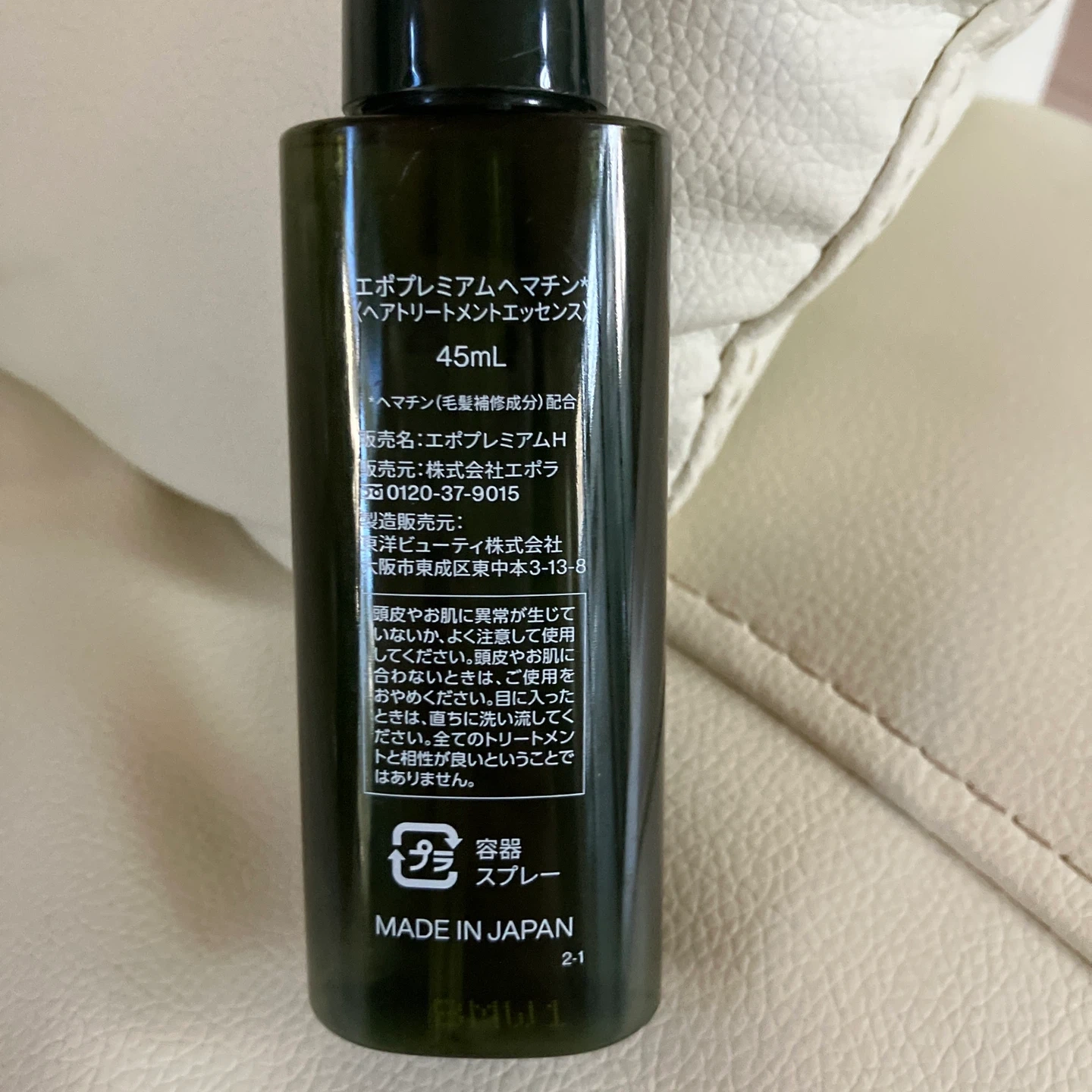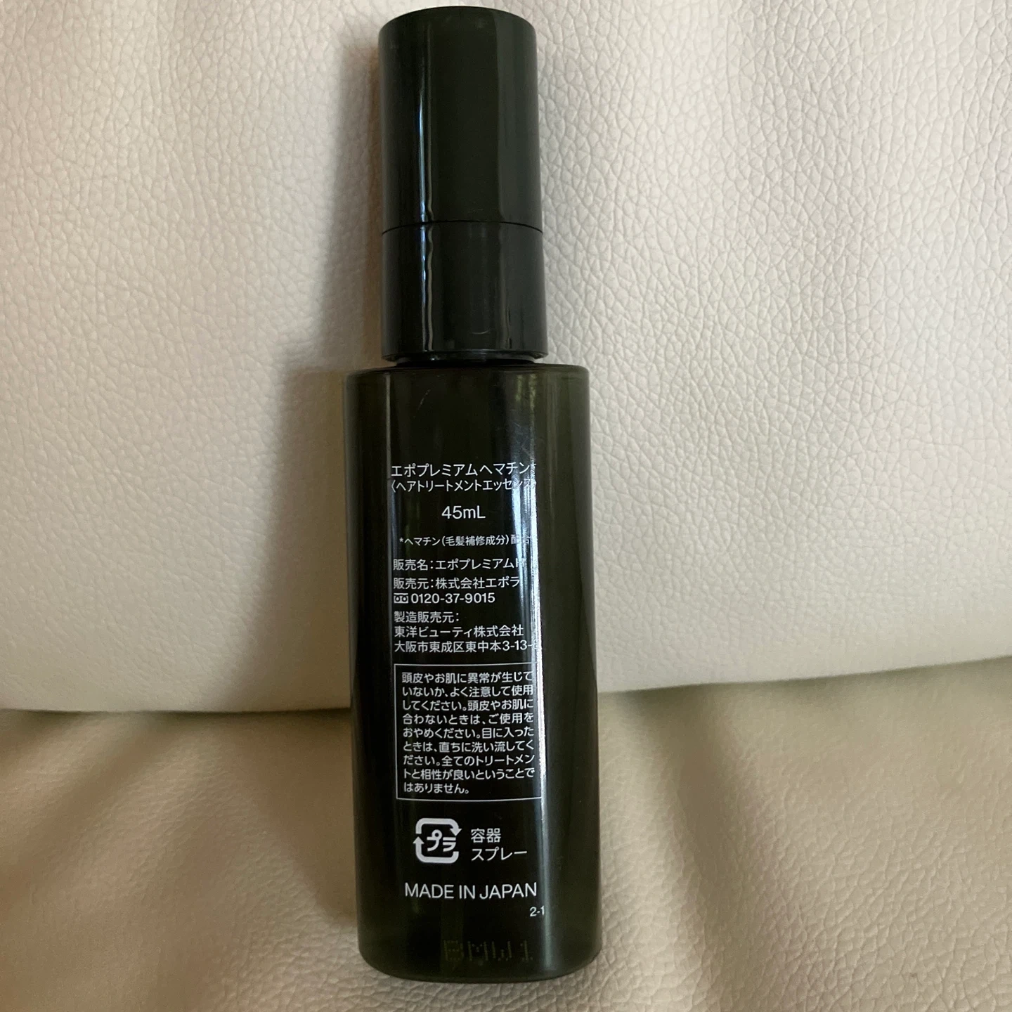 エポのヘアエッセンスです。 空容器 ・ブランド:エポ ・商品名:エポ プレミアム ヘマチン ボリュームアップ ヘアエッセンス ・容量:45ml ・容器:スプレー ・日本製 中古品であることをご了承ください。