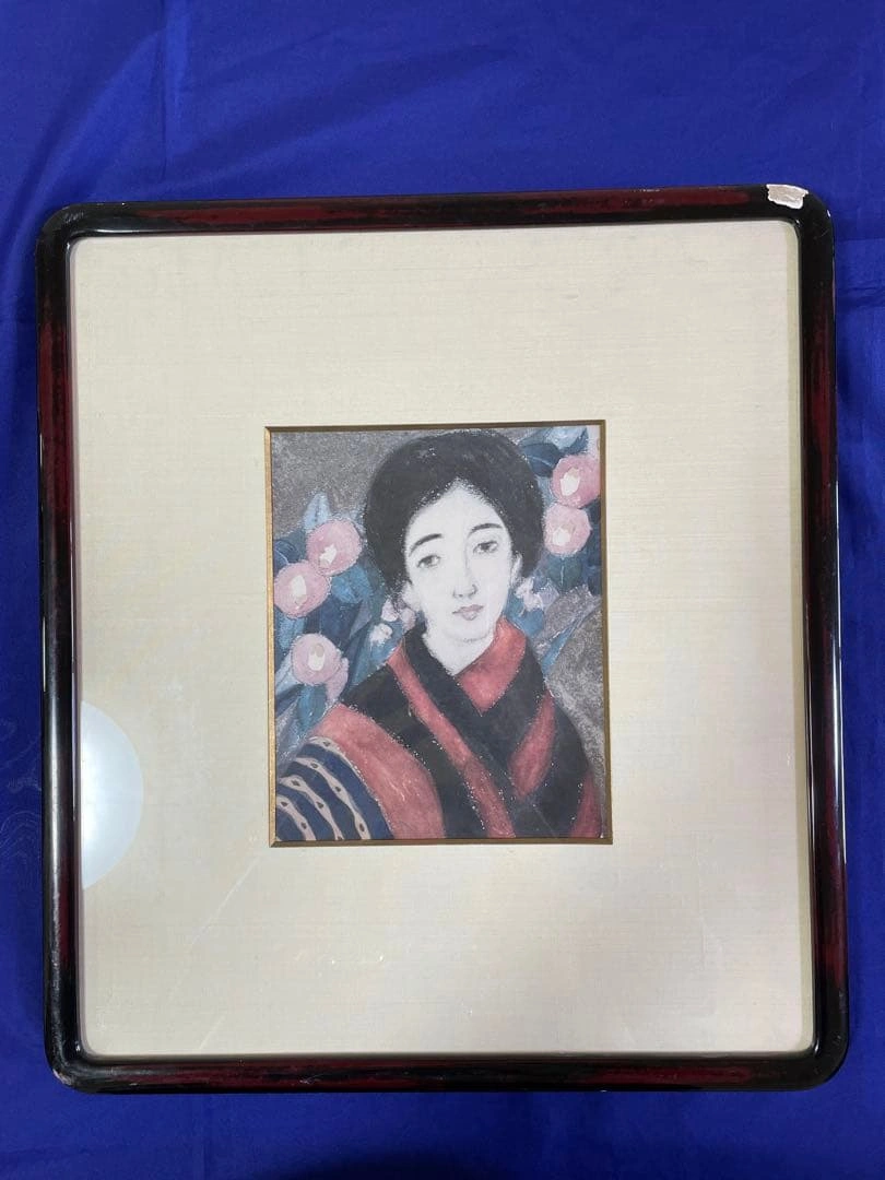 竹下夢二 椿乙女 特製絹刷 サイズ/16×19.5cm 額縁/37×41.5cm 実家に飾ってありました。 詳細不明です。 【目立った傷や汚れなし】としましたが、額は所々にキズがあります。 中の絵画を取り出す所がありませんのでこのままお渡し致します。 かなり古い物ですが、ガラス越しに見た感じではダメージ、劣化はさほど無いように見えます。 画像でご確認頂きご納得の上でのご購入をお願い致します。 ご返品はご容赦ください。