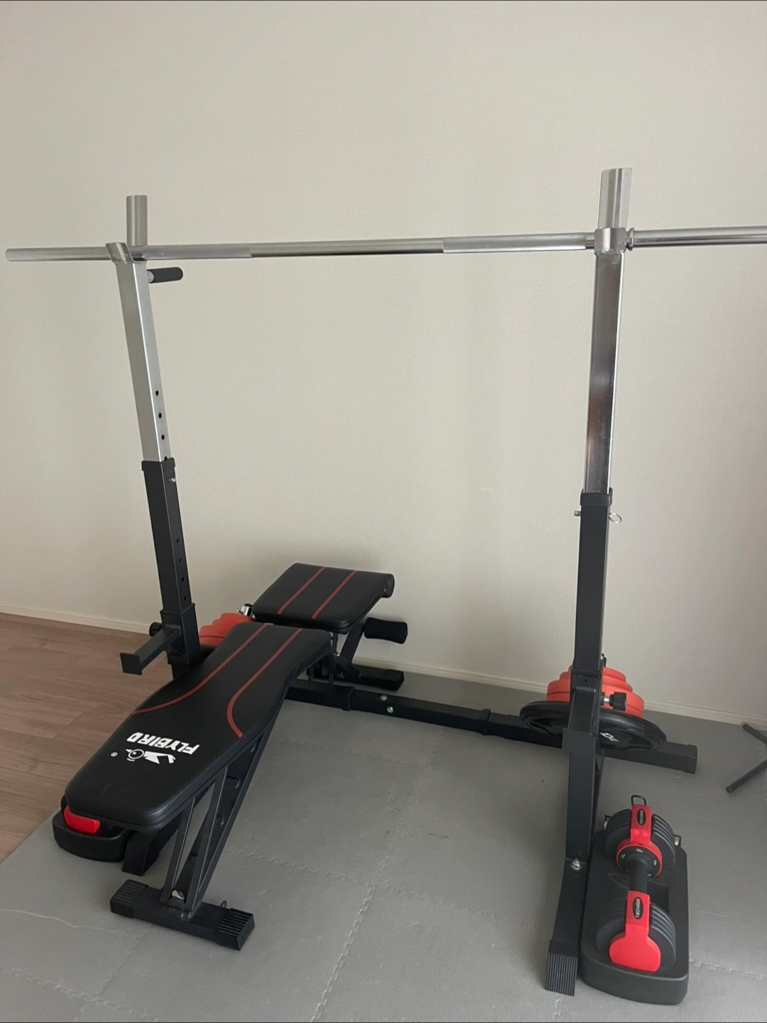金、土、日のみ限定お値引きします。 付属品もセットです。 素人判断ですが、破損等ありません。使用に伴う小傷はありますが、良品の部類と思います。 スクワットラック 高さを変えてベンチプレス等に使用できます ベンチ 角度を変えられます バーベルのバー 10kg プレートを押さえる留め具 プレート 10kg × 2 5kg × 4 2.5kg × 2 1.25kg × 2 可変ダンベル 最大11kg × 2 断捨離中です。 よろしくお願いします。