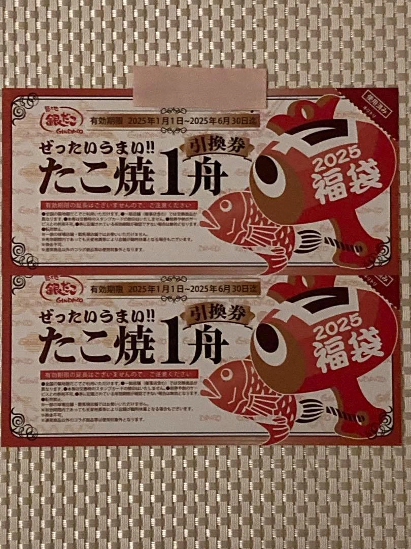 築地銀だこ たこ焼き 1舟 引換券 2枚 2025.6.30期限 ご希望の方はお気軽にご連絡ください。