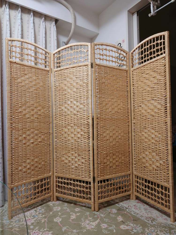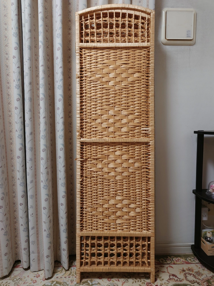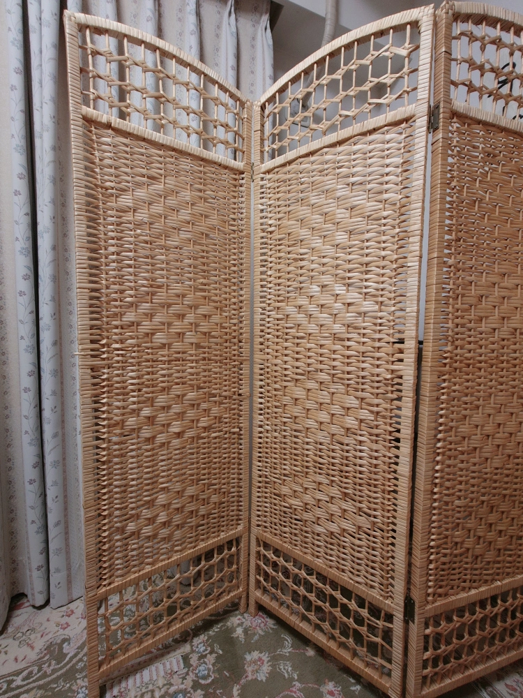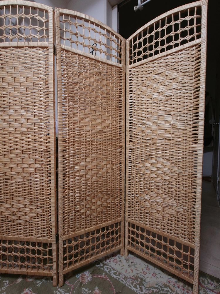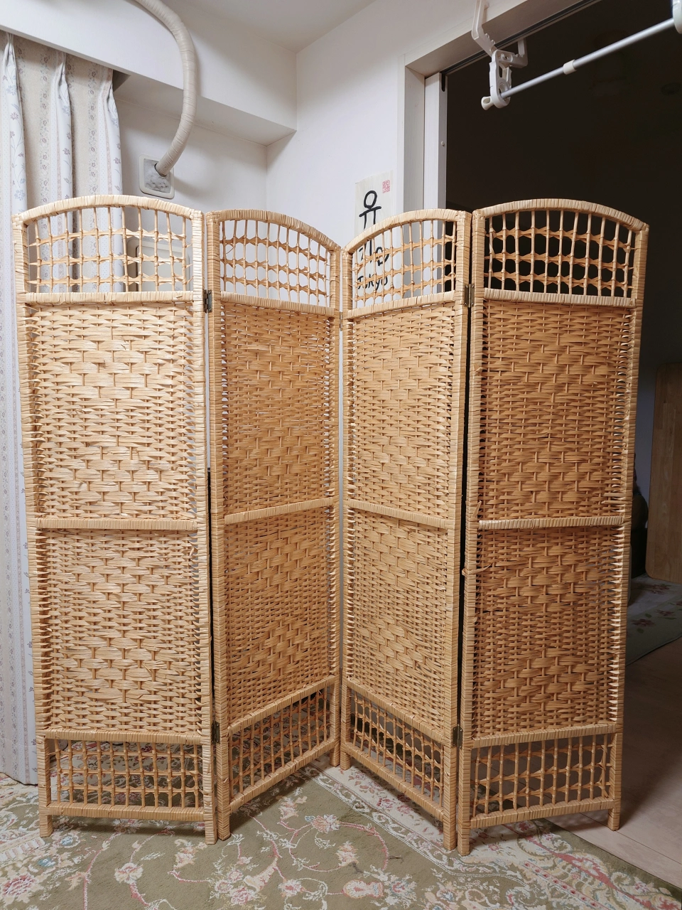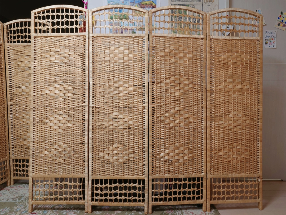籐のパーテーションが2セットです。 高さ140cm、畳んだ時の幅は40cm、全開に広げた時の幅は160cmになります。 1DKのマンションに住んでいた時にベッドスペースとリビングスペースを分けるために1年半ほど使ってましたが、引っ越してからはクローゼットにしまったままでした。 クローゼット整理のために、取りに来て頂ける方に差し上げます。 2セットお引き取りいただける方を優先しますが、1セットでも可です。