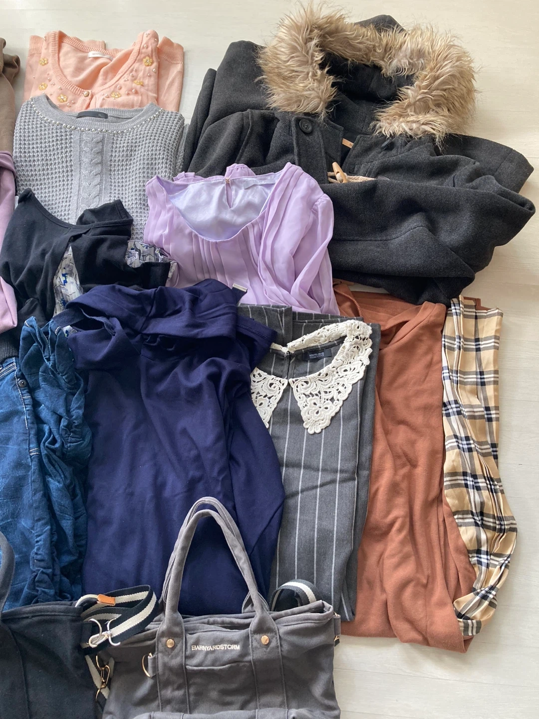 大きいサイズ3Lまとめてセットになります。 未着用や一度の着用品もセットになります。 全体的に美品です。 これからの季節や春先でも着用頂ける内容になっています。 オマケ付きです!(お楽しみに) 【セット内容】 ピーコート×1 ワンピース×2(グレー襟汚れあり) カーディガン×1 チェニック×1 ブラウス×1(未着用) カットソー×1(LL) ニット×1 パーカー×2 スカート×2(紫色は未着用) パンツ×2(黒は新品) レギンス×1(未着用) バック×2 コーディネート画像もありますので、今お持ちの洋服と組み合わせにいかがですか?! 自宅付近まで取りに来て頂ける方のみお願い致します。