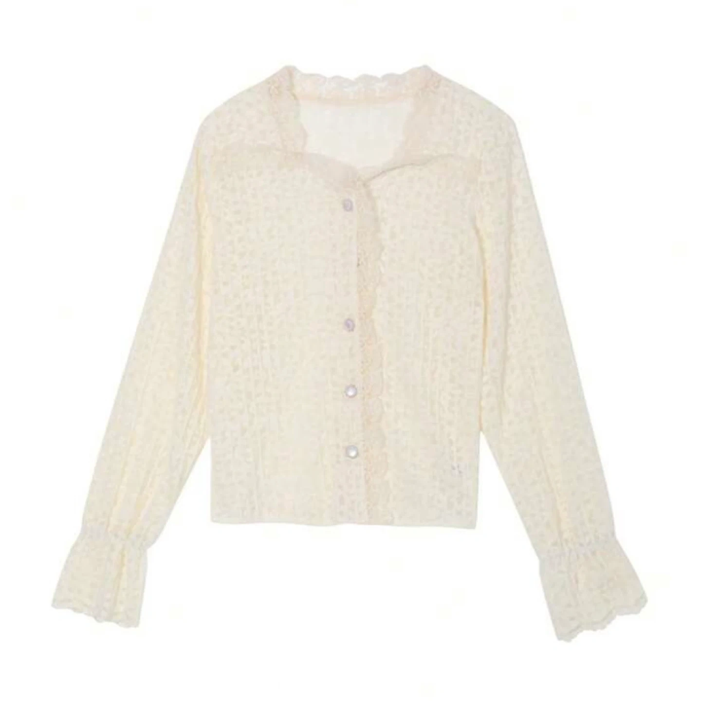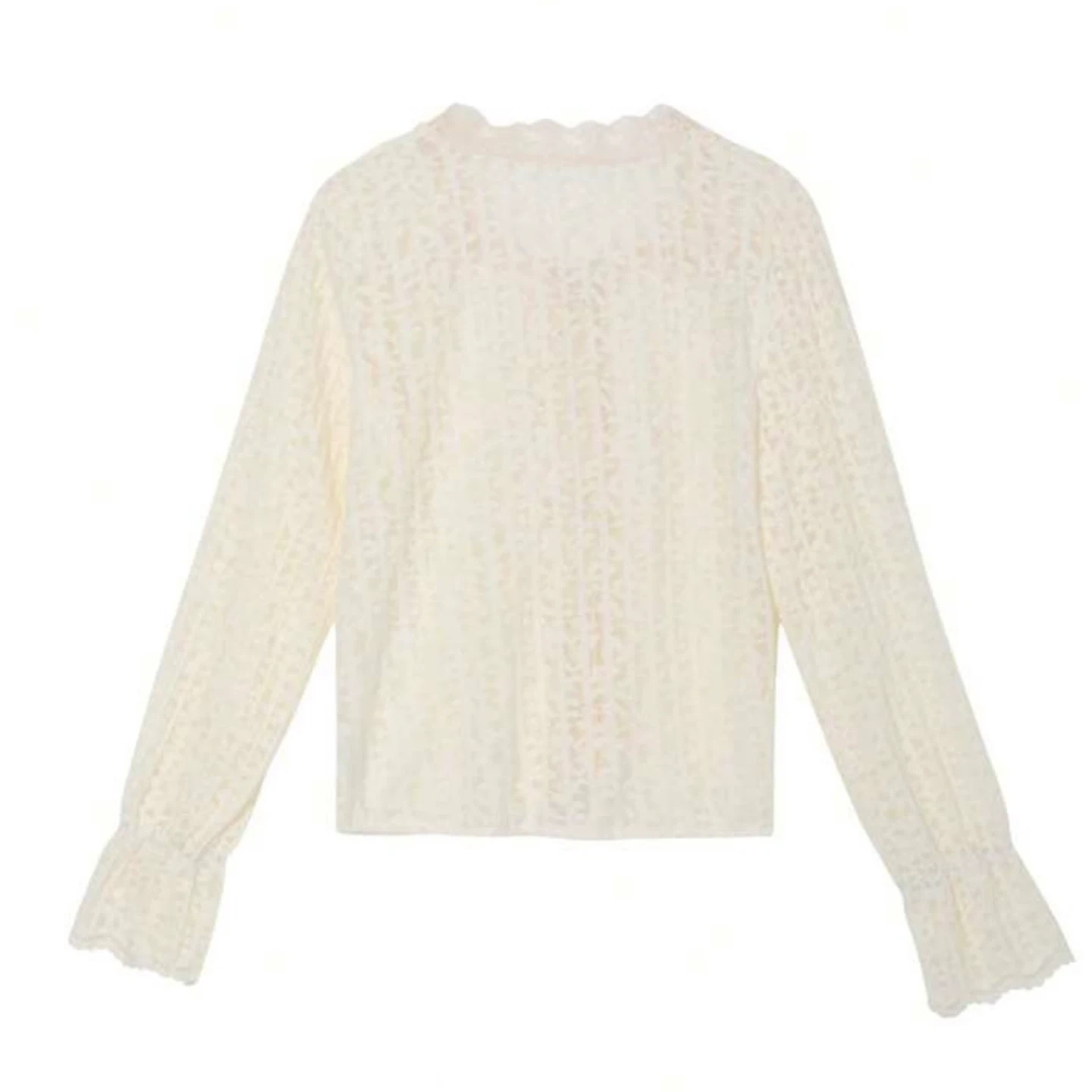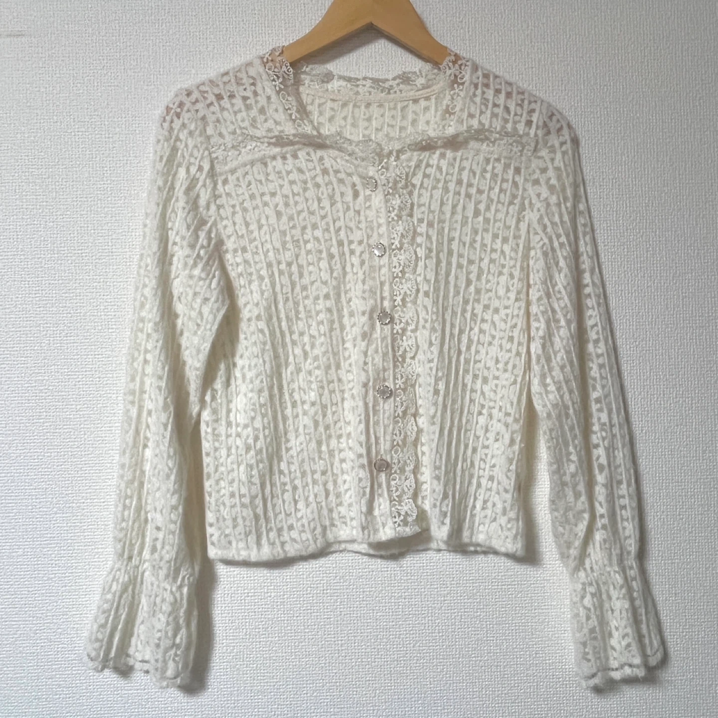 すべて見る【美品・未使用品に近い】 レディース フリル付きニットカーディガン フリーサイズ トップス アイボリー レース 限定品 人気商品