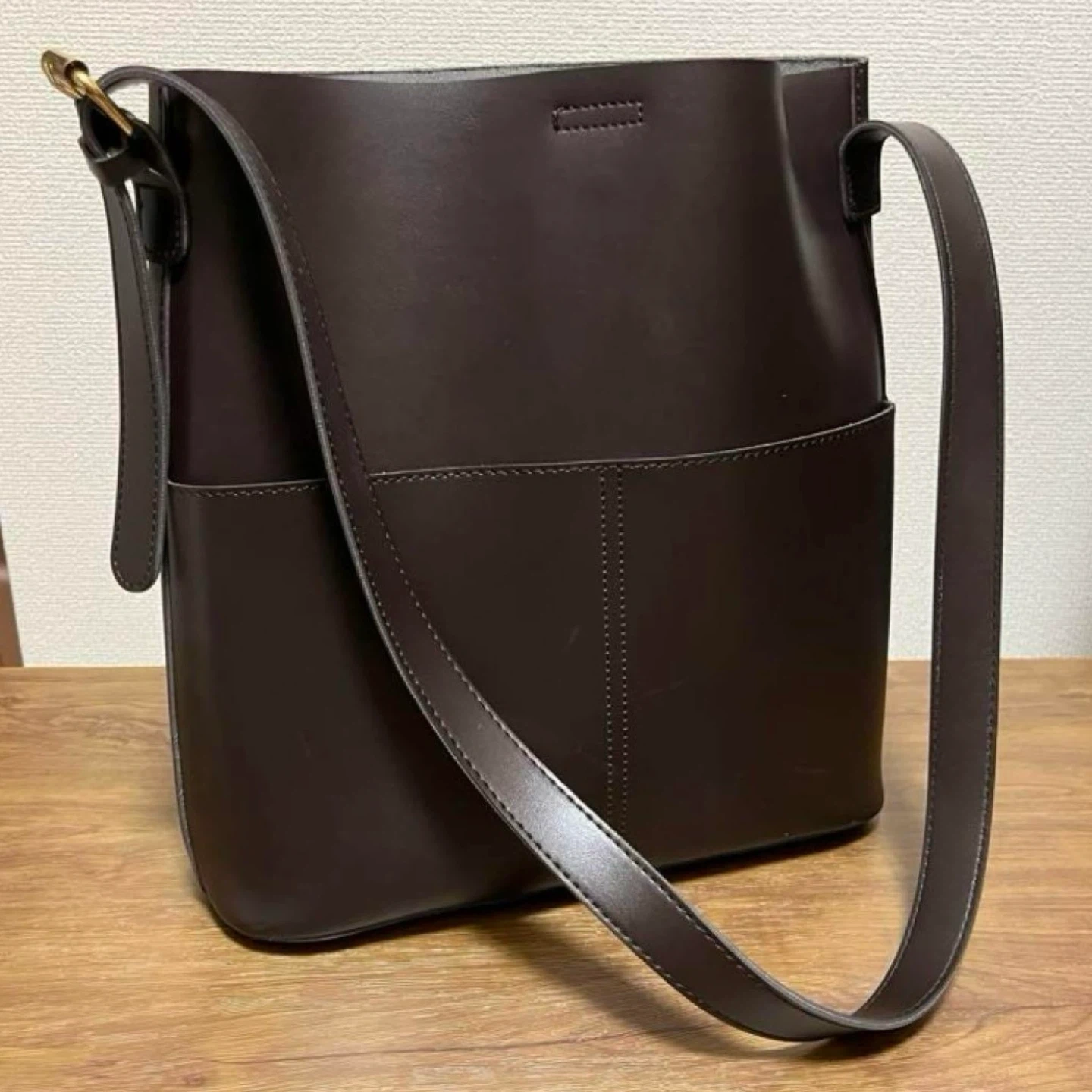 【美品・未使用品に近い】 PUレザー ワンハンドルベルト ショルダーバック コーヒーブラウン (A4ファイル収納可能) 人気商品 コーヒーブラウンのカラーが可愛い、 A4サイズも入る高品質PUレザーのシンプルなショルダーバック、未使用品に近い美品です。 ●表面にコーティングが施されているため、 水分や汚れを気にせずに使うことができます。 ●A4サイズもPCも十分入る余裕の大収納力。 マチが10cmあるのでたくさん入れても形が崩れずどの角度から見ても美しいシルエット。 ●普段使いはもちろんビジネスバッグとしても大活躍です。 購入後は2度のみ使用し袋にいれたまま自宅暗所にて保管しておりました。ご活用頂ける方にお譲りできればと思います! ーーーーーー 受け渡し場所: 小田急線の祖師ヶ谷大蔵駅付近希望です! お気軽にご相談ください。 種類:ショルダーバック カラー:コーヒーブラウン (ブラウン) サイズ:(約) 32×34.5×11.5 cm 定価:5,160円 状態:美品・未使用品に近い ※状態は添付写真1.4.5枚目をご参照ください。 未使用品に近い美品ですが中古品+自宅保管のため、ご理解いただける方にお譲りできればと思います。お渡しの際は簡易的な梱包材で包んでお渡しさせていただきます。 他にも色々出品しております。 まとめてのお取引きも大歓迎です! 他サイトでも出品しているため、気になる方お早めのご連絡をお待ちしております! ーーーーーー ▼検索ワード フェイクレザー ワンハンドル ベルト ショルダーバック A4ファイル 収納可能 PUレザー トートバッグ ショルダーバッグ 革 レディース 斜めがけ 肩かけ 大容量 通勤 通勤バッグ