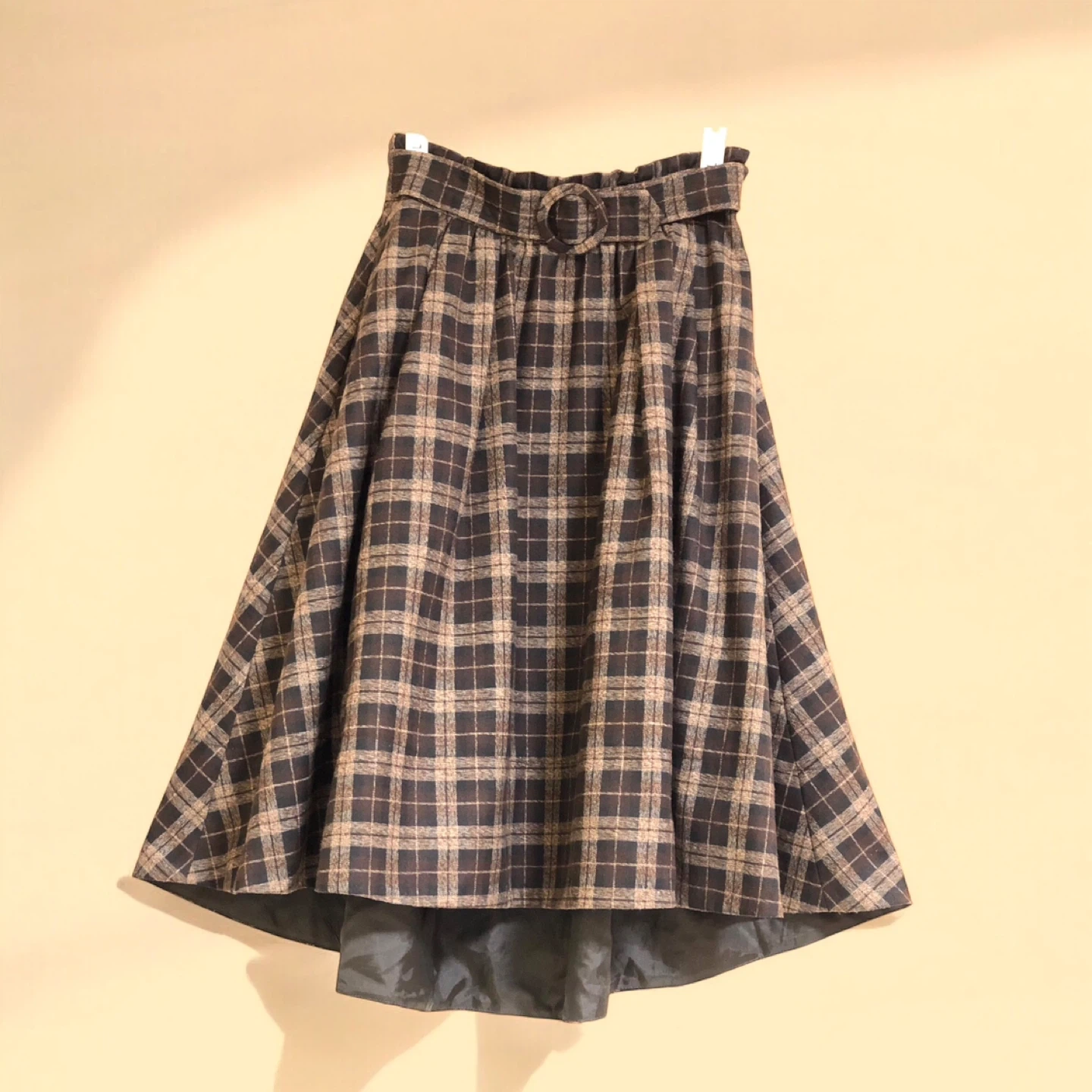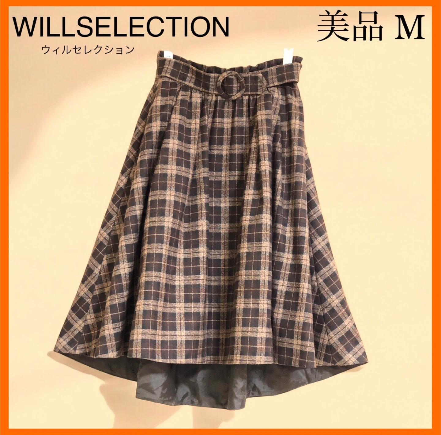 【WILLSELECTION (ウィルセレクション) 】の人気のフレアスカートです。 しっかりとした良い生地を、たっぷり使用しています。裾の内側に仕込みチュールが付いているので、適度に裾がふんわり広がるシルエットがフェミニンです。 裾の後ろ側が、前側よりも長めのアシンメトリーなデザインと、裾広がり効果で脚が細く見えました。 私には少し高かったのですが気に入って購入したので、大切にし過ぎて履かなかったら、太ってサイズアウトしてました(T-T) ・サイズ:M ・色柄:ブラウン系のチェック柄 ・ベルト付き(取り外し不可) ・裏地あり ・3回着用 ・表地:ポリエステル88%、レーヨン9%、ポリウレタン3% ・裏地、チュール部分:ポリエステル100% ・中古品であることご了承ください ☆ ご覧いただきありがとうございます。ご不明な点がございましたら、お気軽にお声がけくださいませ💁♀️✨ 【受渡し場所】笹塚駅 【受渡し 日程/時間帯】幅広く対応可