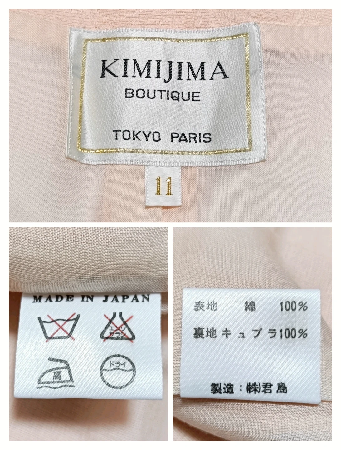 ご覧いただきありがとうございます! 日本のオートクチュール界を代表するブランド、君島一郎の「キミジマブティック」のセットアップです。 光沢感のあるピーチピンクの生地に、立体的な花柄のふくれ織りが施された、非常に華やかで上品なお品です。 細部までこだわり抜かれた金ボタンがアクセントになっており、一目で上質さと分かる気品が漂います。 □商品名□ 美品 キミジマブティック セットアップ 花柄 11号 ピーチピンク 金ボタン □ブランド□ KIMIJIMA BOUTIQUE キミジマブティック □表記サイズ□ 11号(Lサイズ相当) □実寸サイズ(cm) □ 【床置きサイズ】 ジャケット 着丈:58 肩幅:42 身幅︰46 袖丈:30 スカート ウエスト︰35 着丈︰62 ※実寸につきまして多少の誤差はご了承ください。 ※表記サイズだけではなく実寸のサイズをご確認ください。 □カラー□ ピーチピンク(サーモンピンク系) □素材□ 表地:綿 100% 裏地:キュプラ 100% □コンディション□ 目立った汚れやダメージなど特にございません。 ※汚れはできる限り写真にて掲載しております。まずは画像をご確認ください。 どうぞよろしくお願い致します。 □商品管理番号□ X3-W-5638