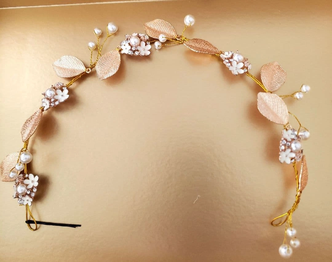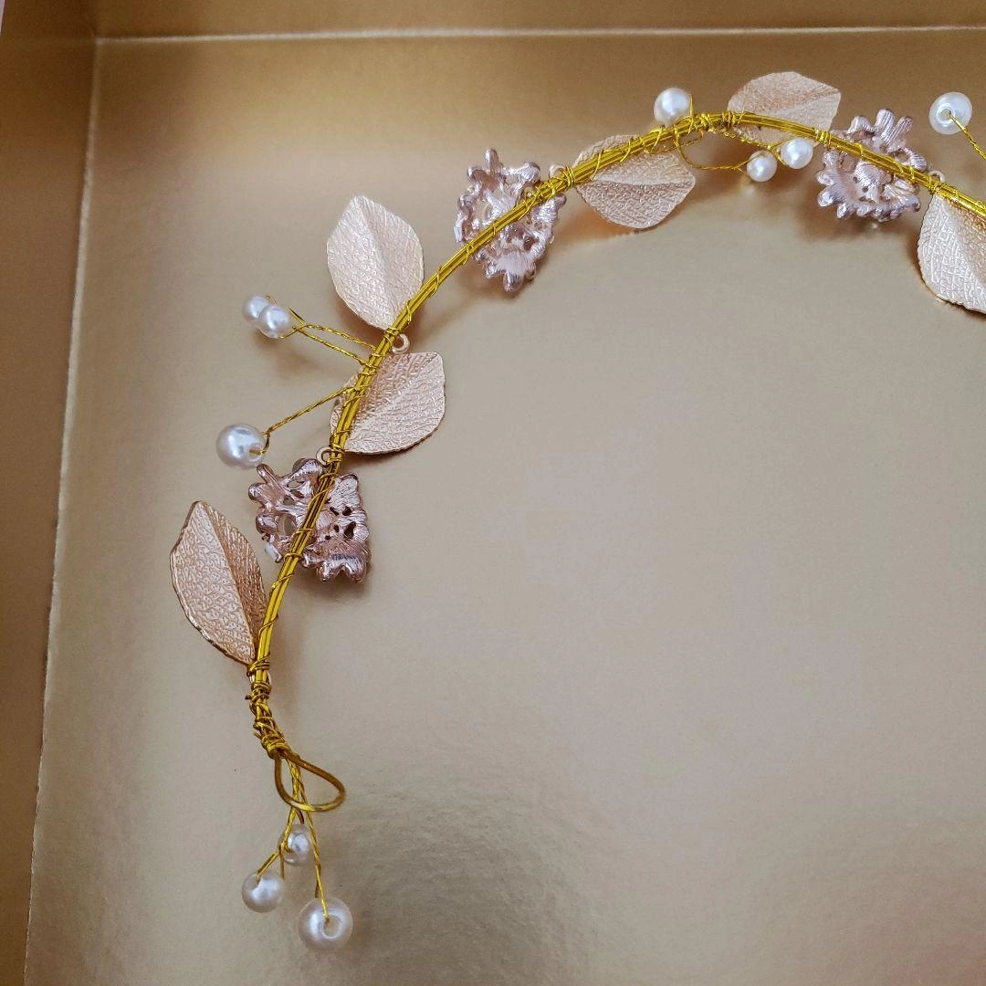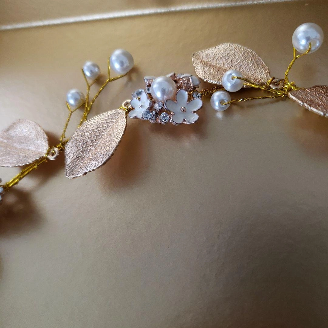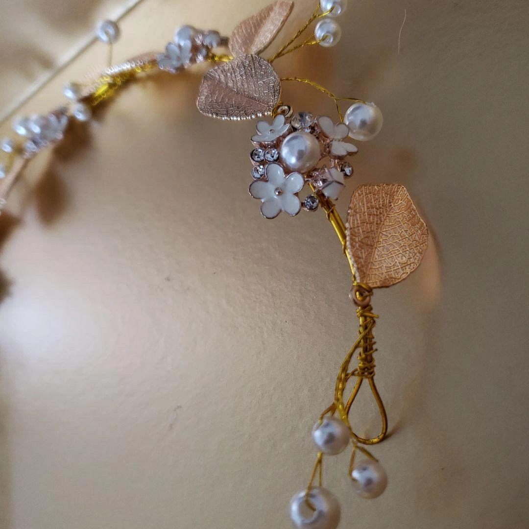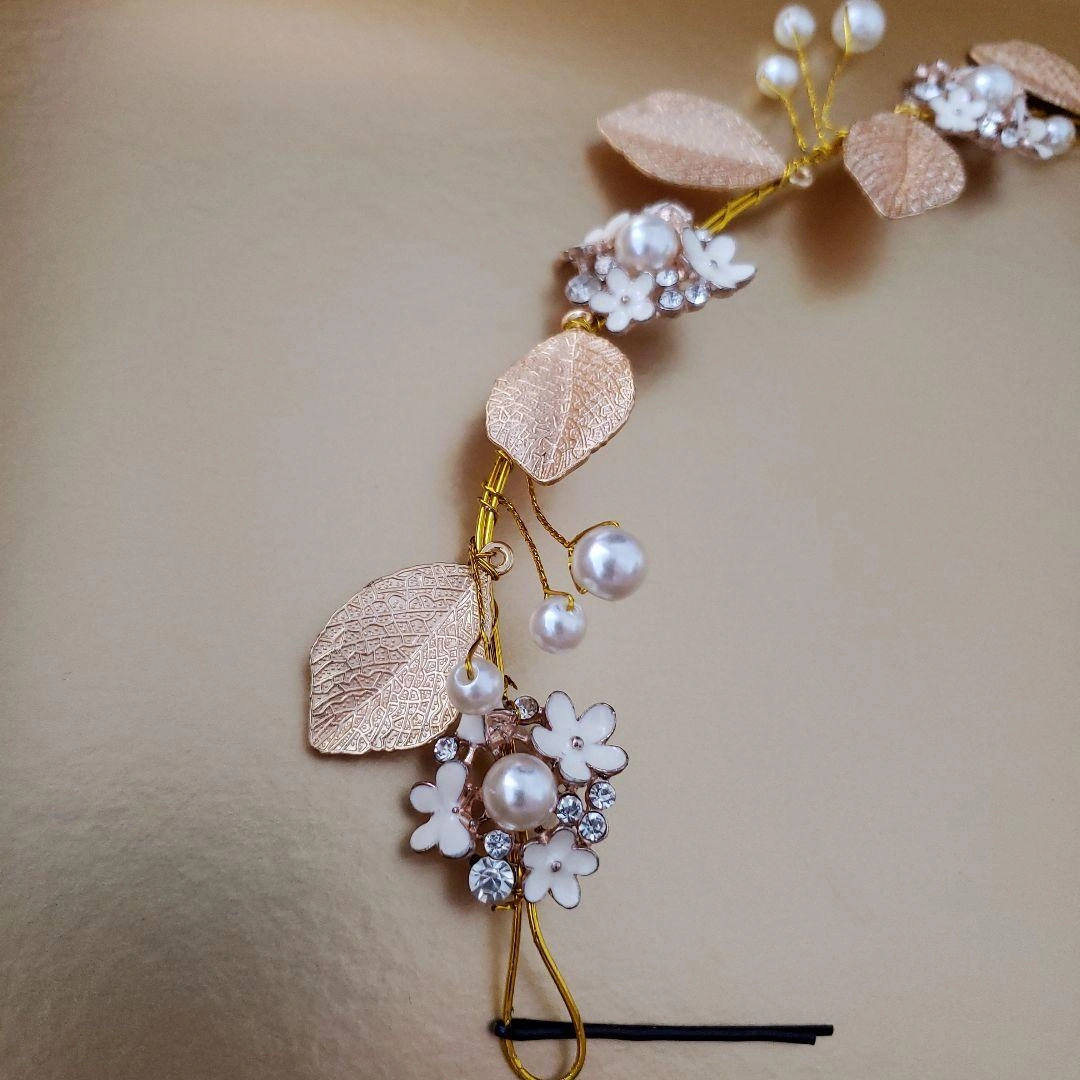 カラー...ゴールド パール ホワイト 高級感ある繊細な作りです。 ヘアアレンジのテスト時に使ったのみで、ほぼ使用していないのでとても綺麗な状態です。 ご希望の方はお気軽にご連絡ください。