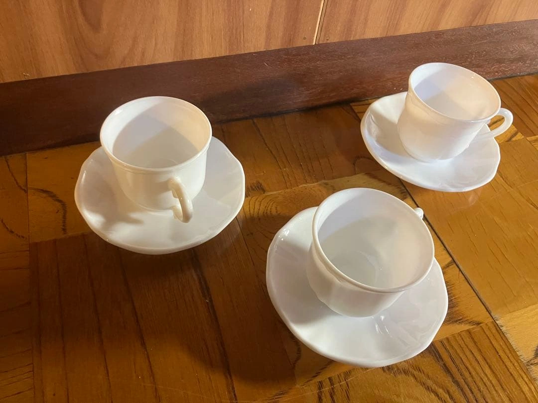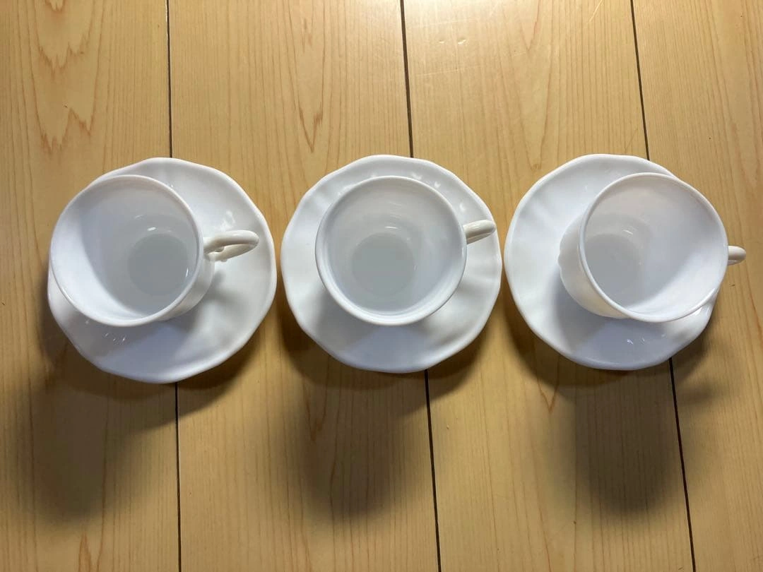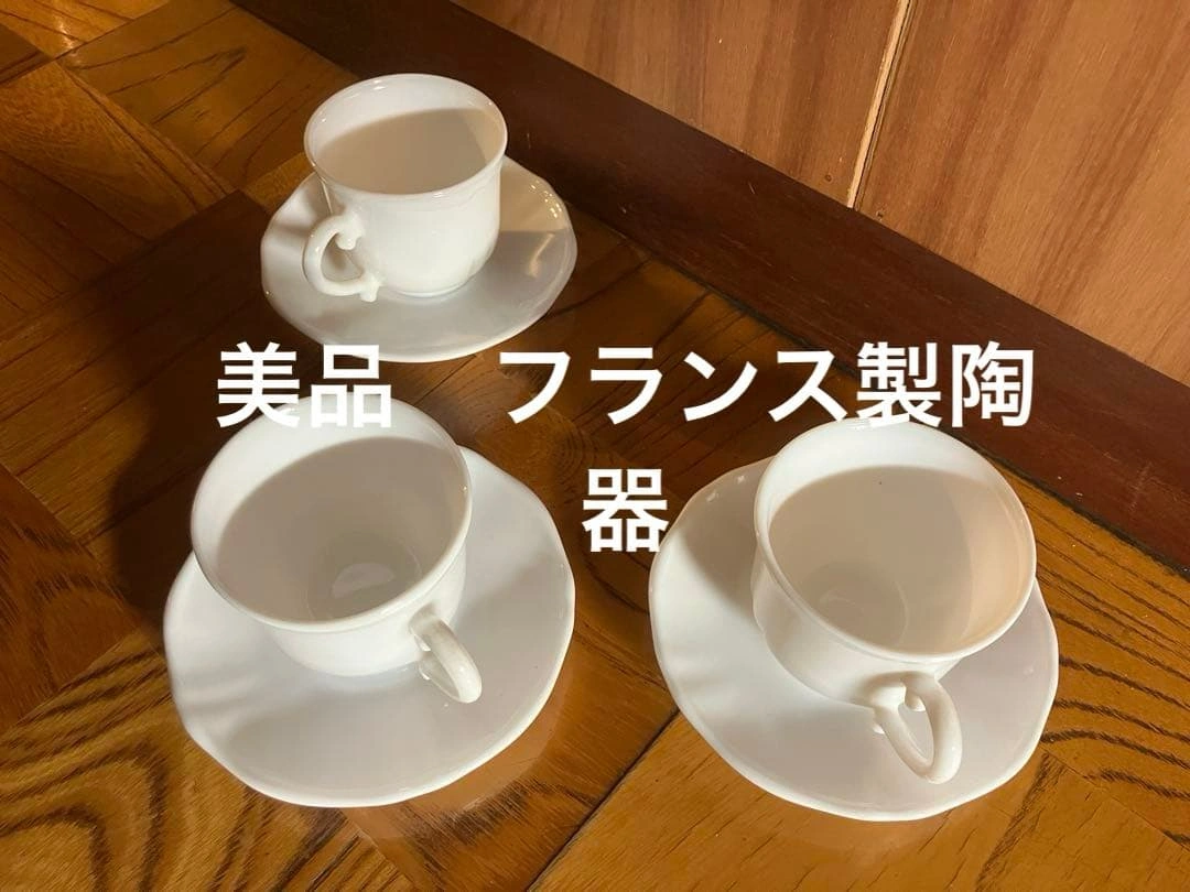 フランス arcopal、シンプルなホワイト陶器のティーカップとソーサーの3個セットです。 - 数量: 3個セット - 色: ホワイト 白 - 素材: 陶器 - デザイン: シンプルな形状 - 用途: コーヒー・ティー用 - ソーサー付き: あり ご覧いただきありがとうございます。 ご希望の方はお気軽にご連絡ください。