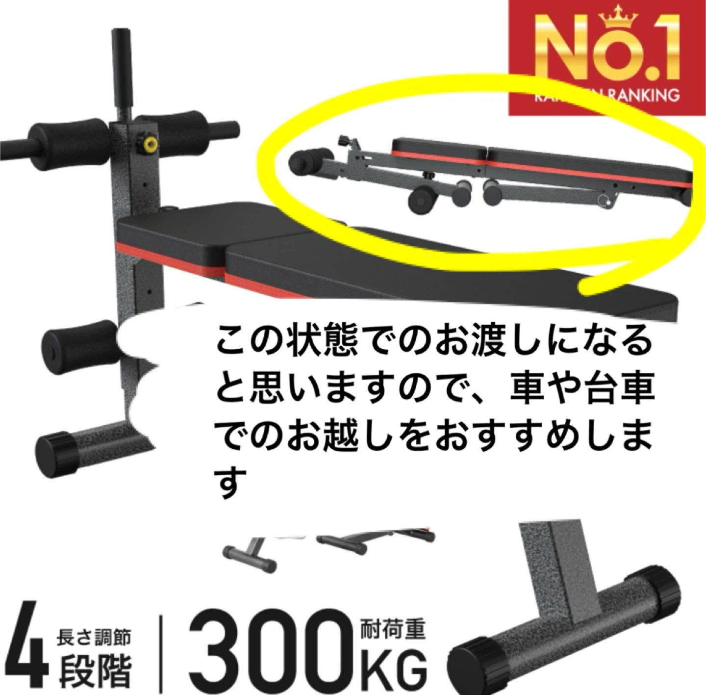 フラット時:W49.5cm×D117.5cm×H71.5-75cm 折りたたみ時:W131cm×D49.5m×H23cm 重量:13.7kg 耐荷重:300kg 仕様 ・ハンドル:6通り ・レッグクッション:4段階 ・折り畳み:可能 ・シート支え:4枚ウィング 組み立ては10分くらいでできます。 ほとんど使ってないので、状態は良いです。 受け渡し場所 今井南町 四季の広場公園前 重たいので車か台車(カート)で取りにきて頂くことをおススメします。 #腹筋#ワークアウト#シットアップベンチ #フラットベンチ #マルチベンチ #腹筋 #背筋 #ダンベルトレーニング #フィットネストレーニングベンチ #筋トレ器具 #ダイエット #筋トレグッズ