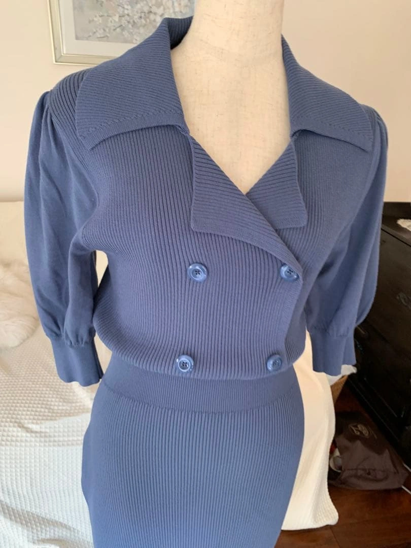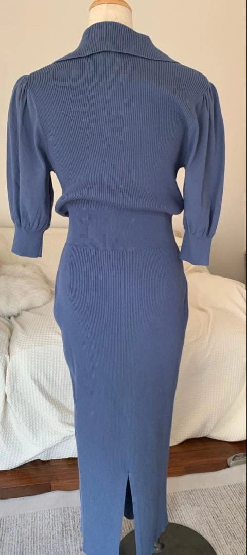 着用僅かでコンディションは良好です。 クラシカルなビッグカラーがトレンド感を高めるニットワンピース。 程よいタイトシルエットと袖のパフデザインでリラックスし ながらもスタイルUPさせた女性らしいスタイルが叶います。 最終画像は、ご参考までスカートベルトを上げてみた状態です。 M:着丈:123||バスト:72||肩幅:32||袖丈:35||袖口幅:9||裾まわり:82||ウエスト:55||ヒップ:82 商品詳細原産国:中国 素材:レーヨン:69 ポリエステル:31 ご希望の方はお気軽にご連絡ください。