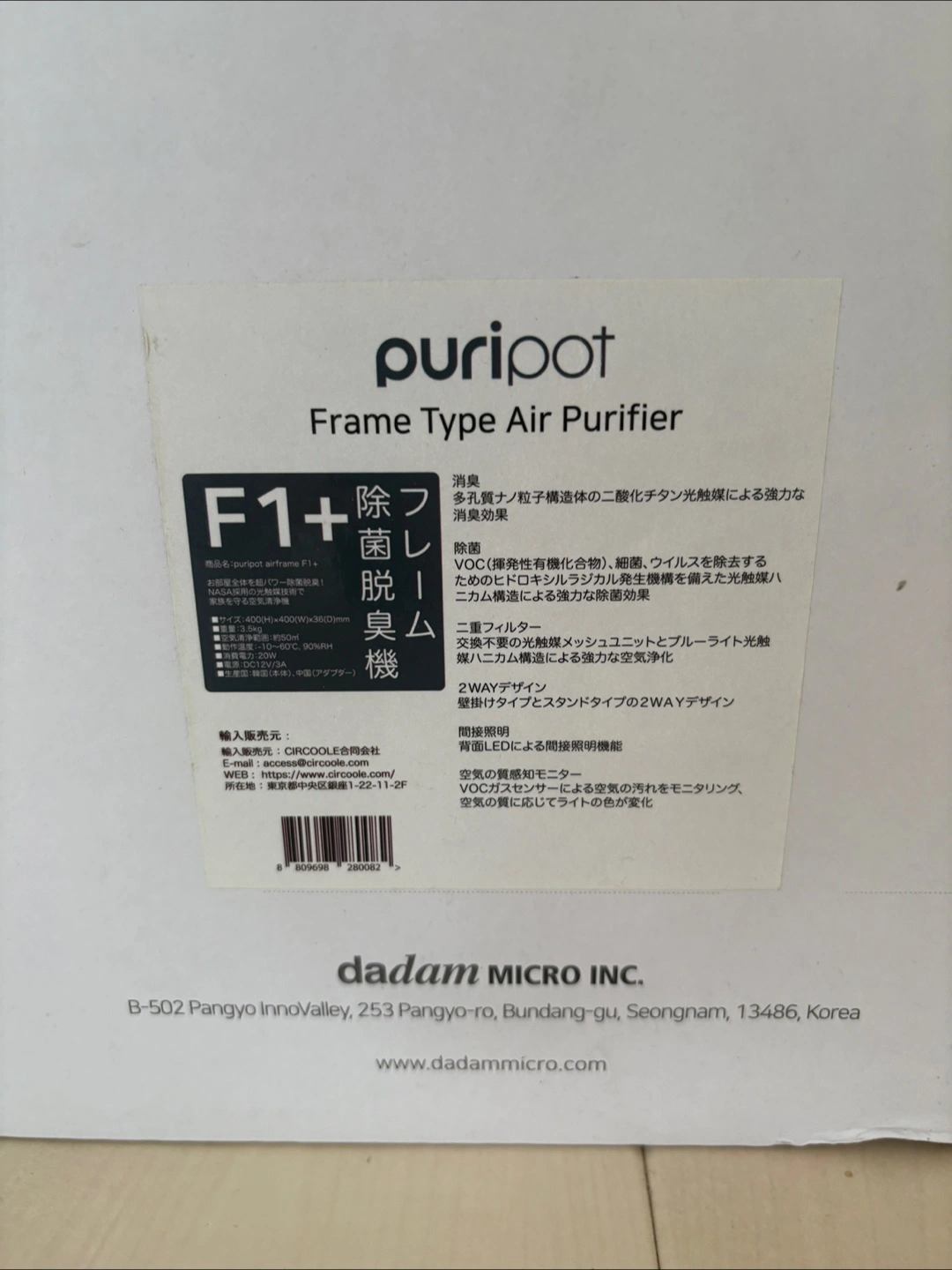 ピュリポットの空気清浄機です。 フィルターなしでお手入れ簡単、壁掛けもできる空気清浄機 空気中の花粉やホコリを除去し清潔な空気をお部屋に供給します。 本商品は、2020年にイノベーションアワード受賞いたしました。 イノベーションアワードとは、世界の家電が集まった展示会で先進的な技術を使用した商品に贈られる賞です。 一般的な空気清浄機のように細菌や臭いの元を「捕集」するのでなく、光触媒技術で「除去」します。 フィルターの交換は不要のため、お手入れが簡単にできます。 また、4色のLEDライトで空気の質を表す機能付きのため、安心してお使いいただけます。 【サイズ】幅400×高さ400×厚み36mm  ●重さ:3.5kg 【主な機能】●脱臭 ●除菌 ●二重フィルター構造 ●2WAYデザイン ●間接照明 ●空気室モニター ●Iot機能(FIN) 【運転モード】弱/中/強/自動運転モード 【運転音】最小:29dBA/最大:49dBA 【消費電力】20W 【電 源】DC 12V/3A 【動作環境】気温:-10〜60° 湿度:90%以下 【適用床面積】約50平米(推奨)約30畳 【生産国】本体:韓国、アダプター:中国 販売価格(税込み)¥64,790 • 喫煙者ではありません • ペット飼ってません ・使用期間は約一ヶ月弱ですので、美品です!   ご不明点があればお気軽にご連絡ください。