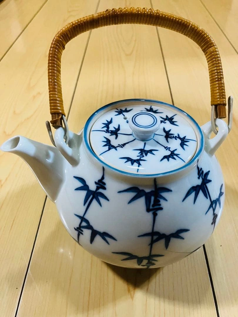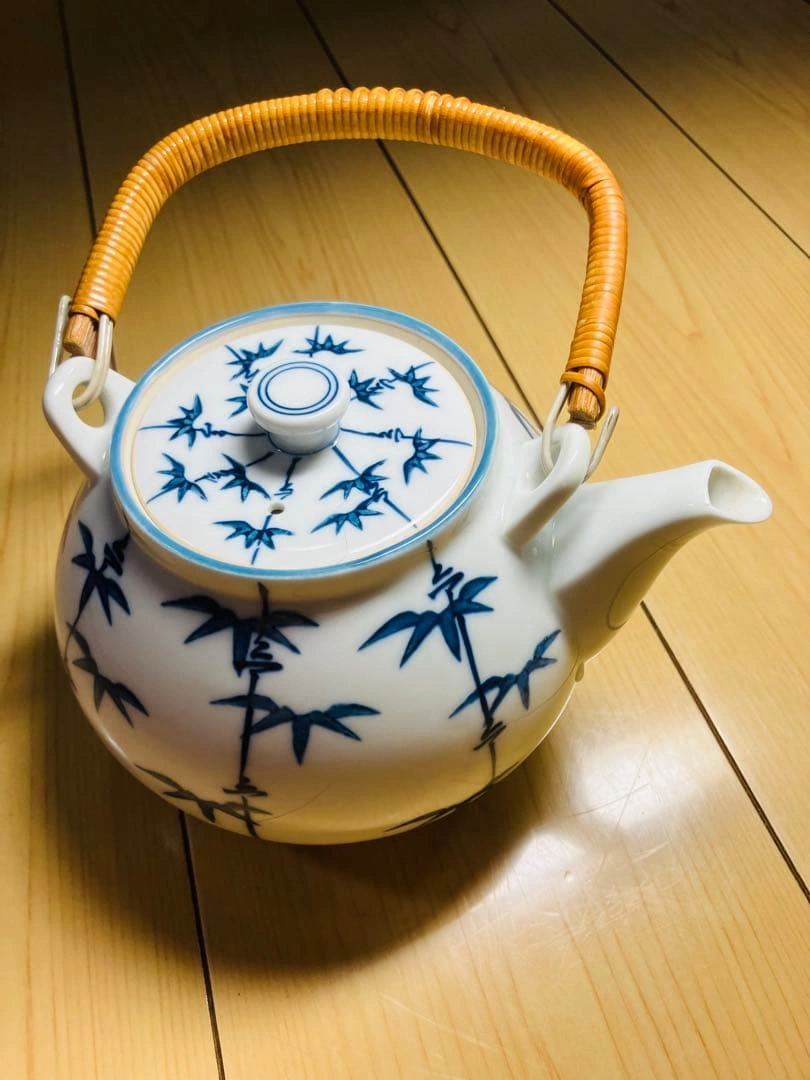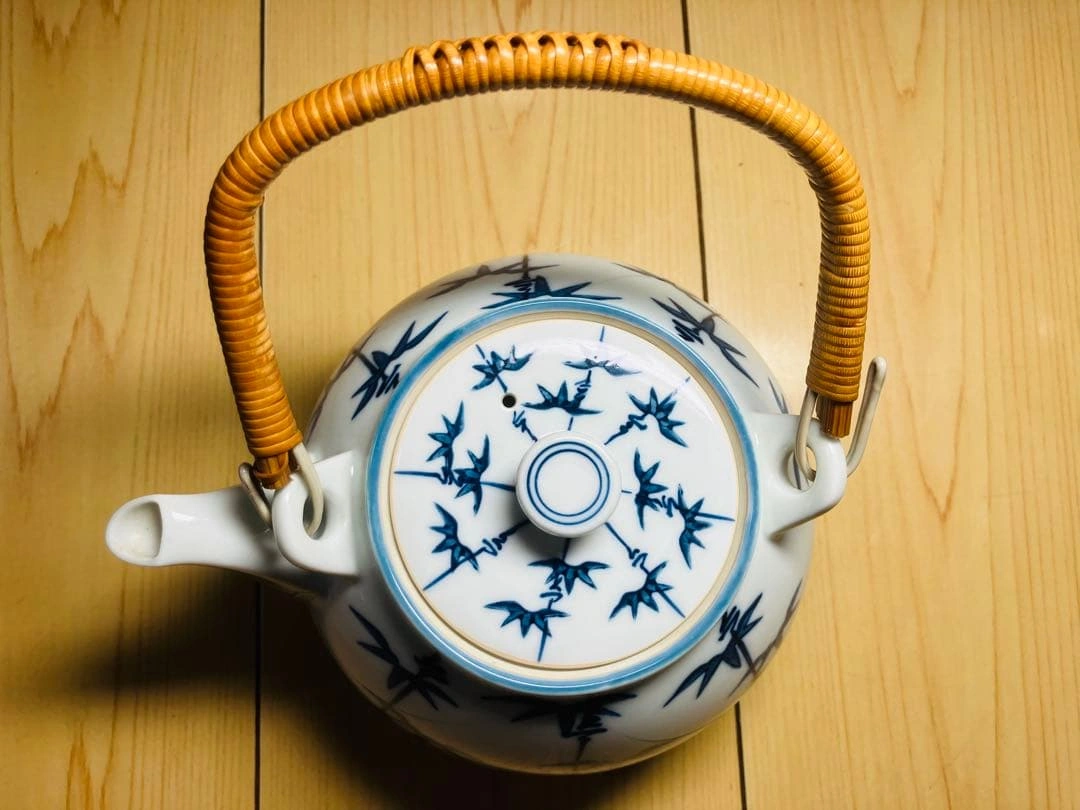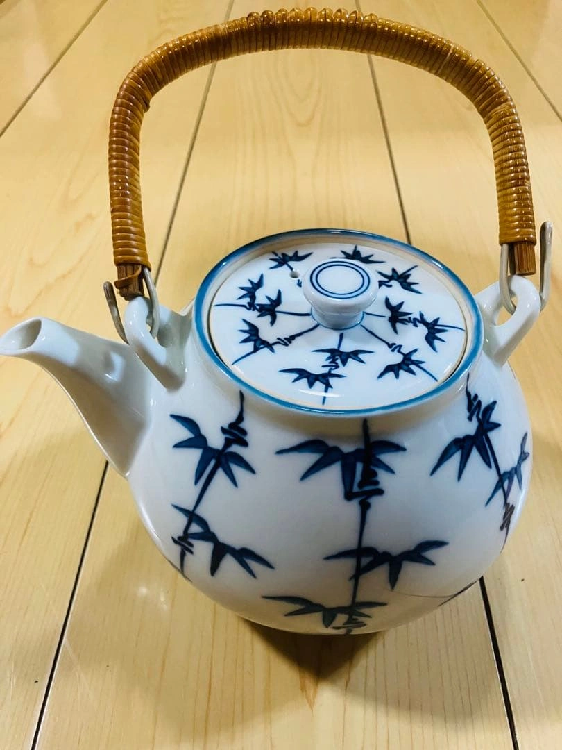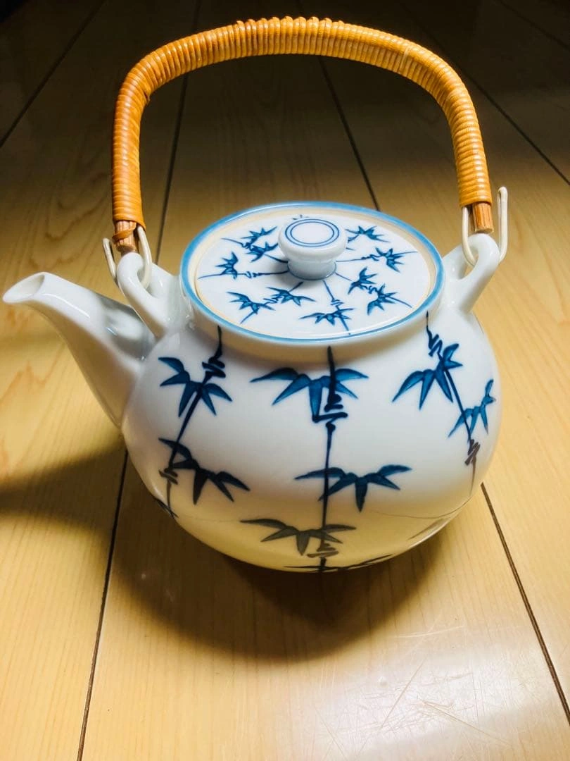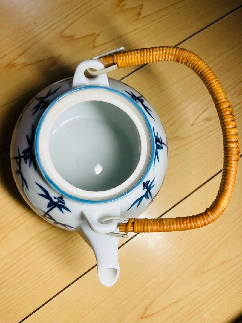 竹模様の美しい急須、籐のハンドル付き。 - デザイン: 青い竹の模様が施された白い急須 - ハンドル: 籐製のハンドル - 形状: 丸みを帯びた形状の急須 - 蓋: 装飾的な蓋付き ※別途出品中の①の湯のみと同じデザインですのでセットにもなります。 ご覧いただきありがとうございます。 ご希望の方はお気軽にご連絡ください。