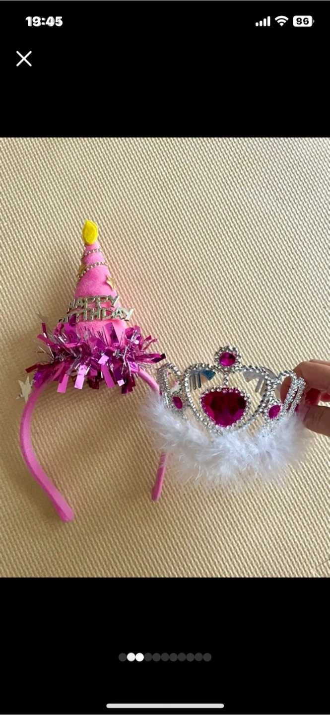 パーティー用のカチューシャ 2点セットです ・ピンクのバースデー帽子カチューシャ ・シルバーのティアラカチューシャ ・イベント用 ・使用感少なめ お誕生日の日に 数時間かぶった カチューシャとティアラです どちらもお誕生日会の 数時間しかかぶっていないので 美品です イベントや女子会、お子様等に いかがでしょうか? ティアラは 本人着画も掲載しています 参考にして下さい アルコール消毒済みです 受け渡し場所については 柔軟に対応したいと思いますので プロフィールをご一読ください 自宅保管品であるということを ご了承の上ご購入ください ご不明点等ございましたら ご連絡ください 他にもたくさん出品しております 合わせてご検討ください