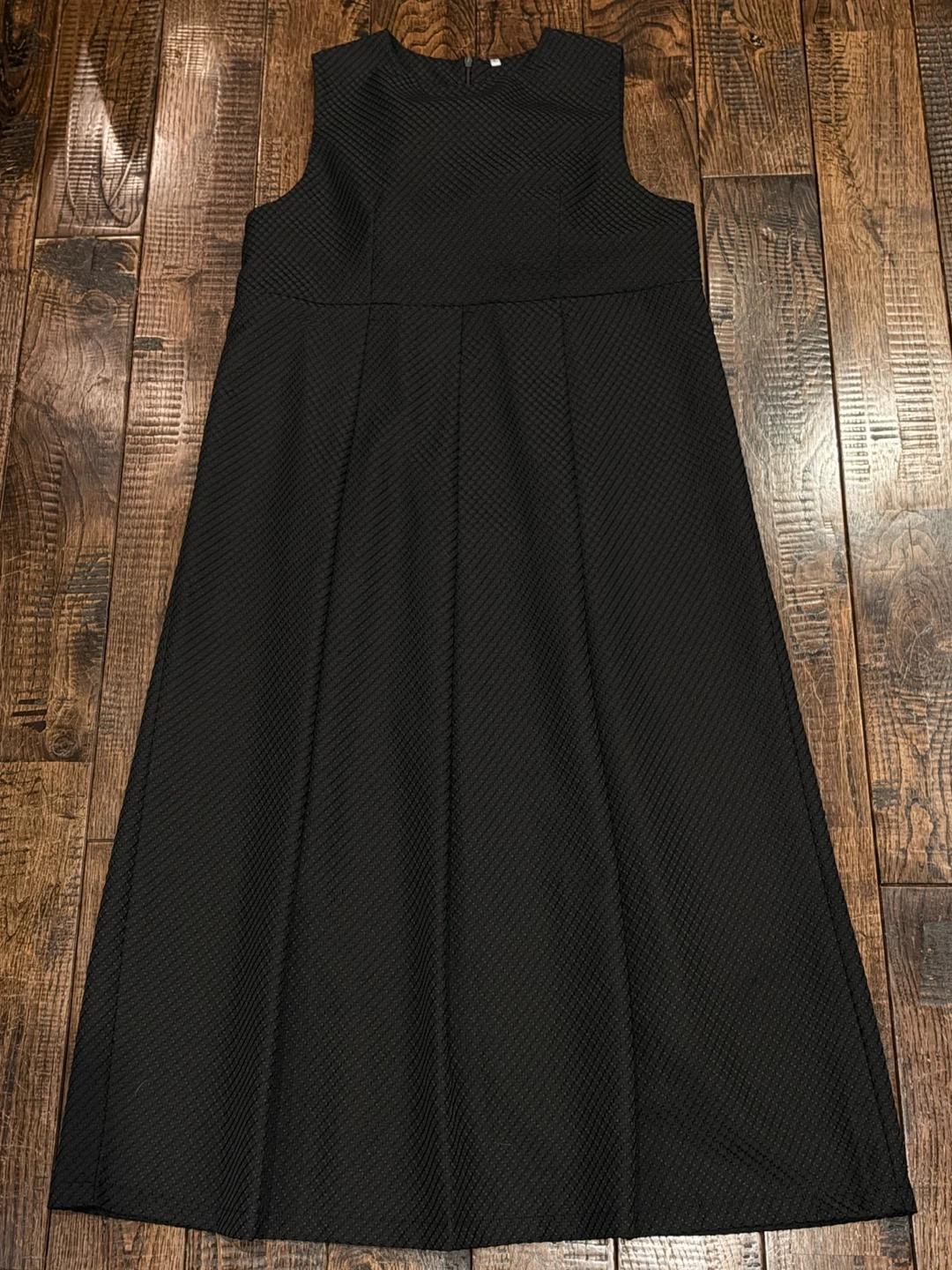 高級感ある黒のシンプルワンピースです。 バックファスナー付き ハニカム模様のチェック柄ワンピースです。 ウエストからのタックで上品なスカートラインにしっかりとした生地感でお出かけ用のお洒落着としてもおすすめです。 高級感、ハリ感あるポリエステル生地です。 長袖や半袖のトップスを合わせたり、タートルネックのトップスと重ね着するなど、様々なスタイルで楽しむことができ、 カジュアルにもきれいめにも着こなしの幅が広がります。 ・色:ブラック ・サイズ : Lサイズ (出品者161㌢ 49㌔ 丈は足首上のロング.ゆったり目で着用するのには丁度良いサイズです) ・デザイン:ハニカム模様のチェック柄、タック入り ・状態 : バッグファスナー付き ・状態:使用感なし 使用感なしで美品ですが、クローゼット内自宅保管であることをご了承ください。 ニオイなどを気にする方は着用前にお洗濯をお勧め致します。 タバコは吸いません。 中古品であることをご了承ください。