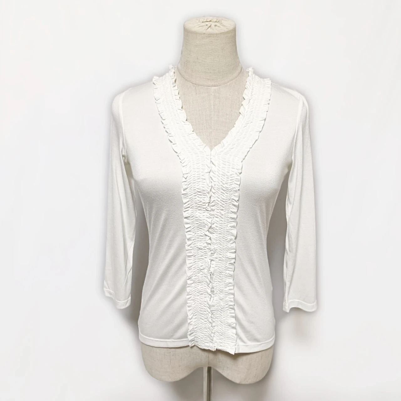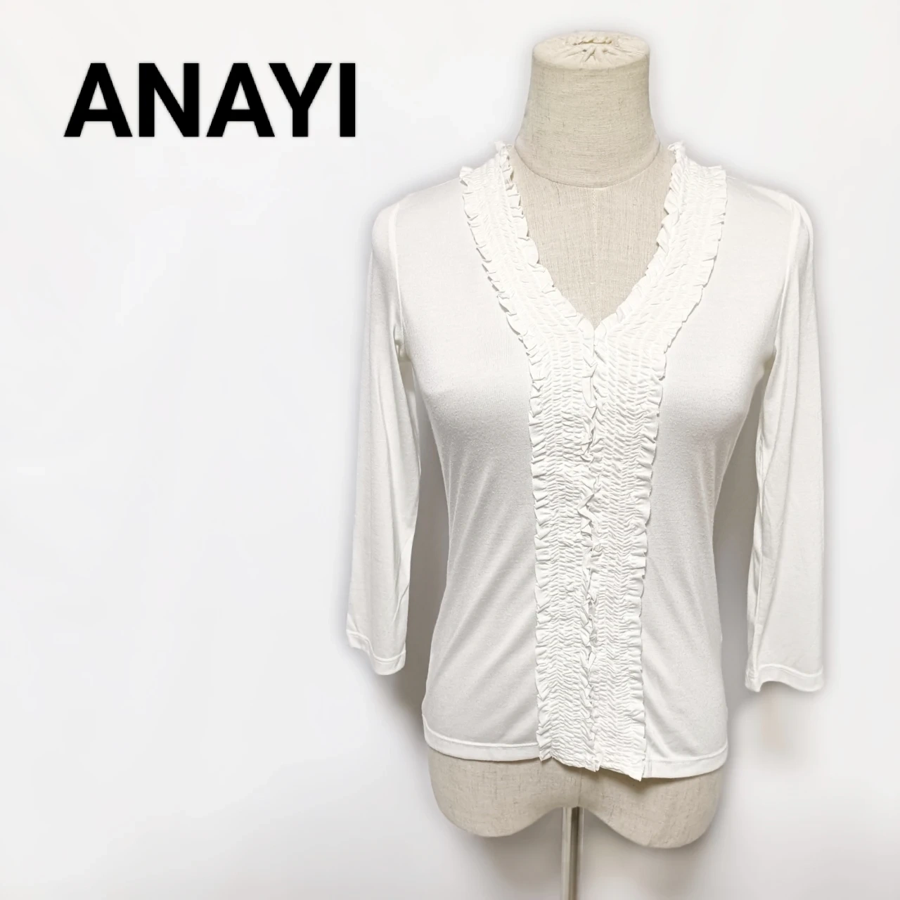【美品】ANAYI アナイ ギャザー フリル Vネックブラウス カットソー 38
