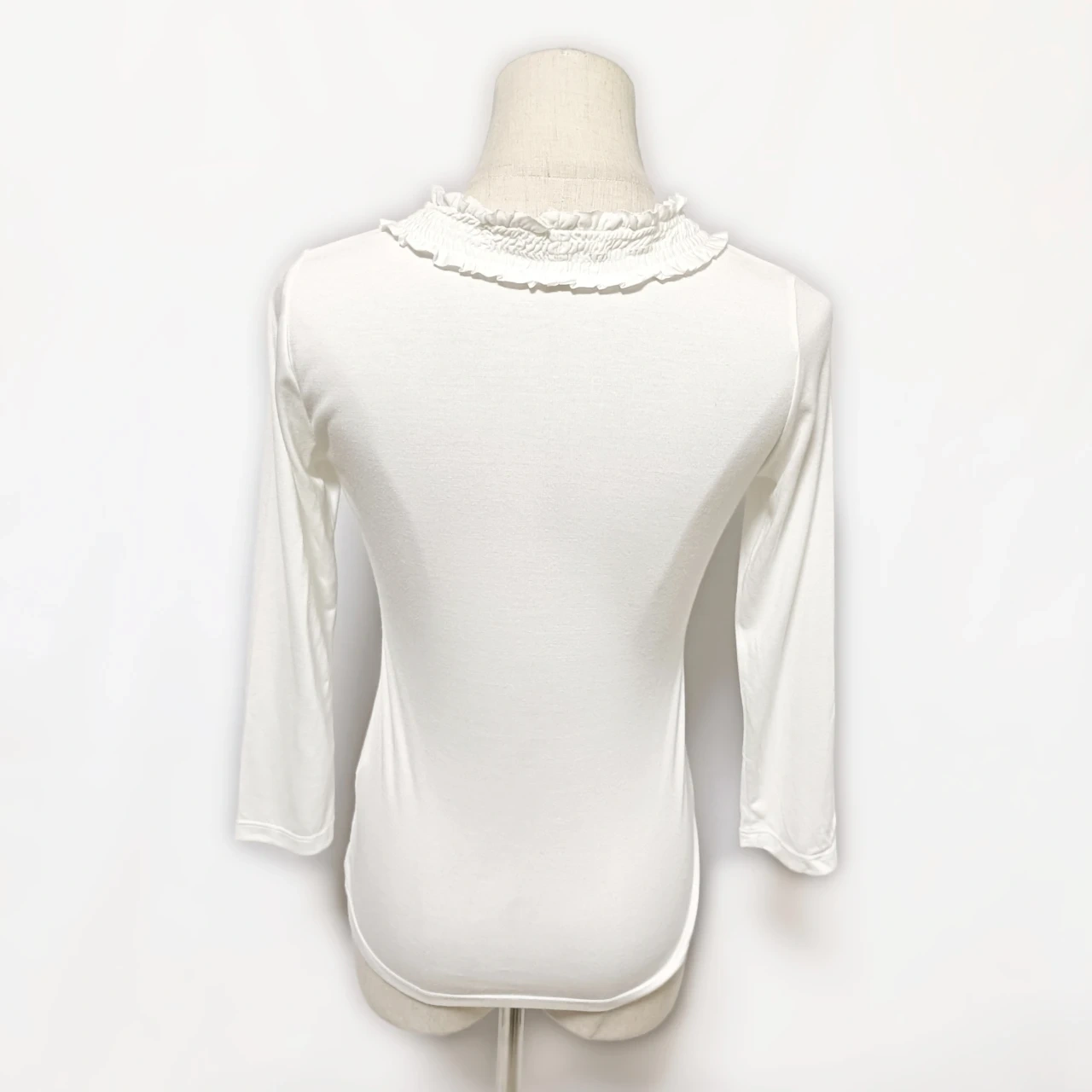 ご覧いただきありがとうございます! ANAYI(アナイ)の、エレガントなフリルデザインのカットソー/ブラウスです。 Vネックラインから前立てにかけて、繊細なギャザーとフリルが施されており、一枚で華やかな印象を与えます。ジャケットのインナーとしても映えます。 上品なホワイトカラーで、どんなボトムスにも合わせやすく、オフィスから普段使いまで幅広く活躍します。​ #joymaxお得なプロフへ #ゆうの古着屋さん_レディーストップス ★フォロー割り+1点サービス★ 3000円以上の商品購入時、フォローして頂けましたら+1点無料サービス☆ ①フォローしていること ②+1点の商品名 をコメントしてください☆ 即購入大歓迎です。 値下げなどの詳細はプロフィールをご覧ください☆ □商品名□ ​【美品】ANAYI アナイ ギャザー フリル Vネックブラウス カットソー 38 □ブランド□ ANAYI アナイ □表記サイズ□ 38 (Mサイズ相当) □実寸サイズ(cm) □ 着丈:51 肩幅:36 身幅:42 袖丈:44 ※実寸につきまして多少の誤差はご了承ください。 ※表記サイズだけではなく実寸のサイズをご確認ください。 □カラー□ ホワイト/白 □素材□ ​レーヨン (モダール) 64% ポリエステル 36% □コンディション□ 目立った汚れやダメージなど特にございません。 ※汚れはできる限り写真にて掲載しております。まずは画像をご確認ください。 □お取引について□ トラブル防止のため、購入前にプロフィールをご確認くださいませ。 なにかご質問がございましたらお気軽にコメントください。 出品一覧→ #joymaxお得なプロフへ どうぞよろしくお願い致します。 #ANAYI #アナイ #カットソー #フリルVネック #38サイズ □商品管理番号□ BB1-R-5606