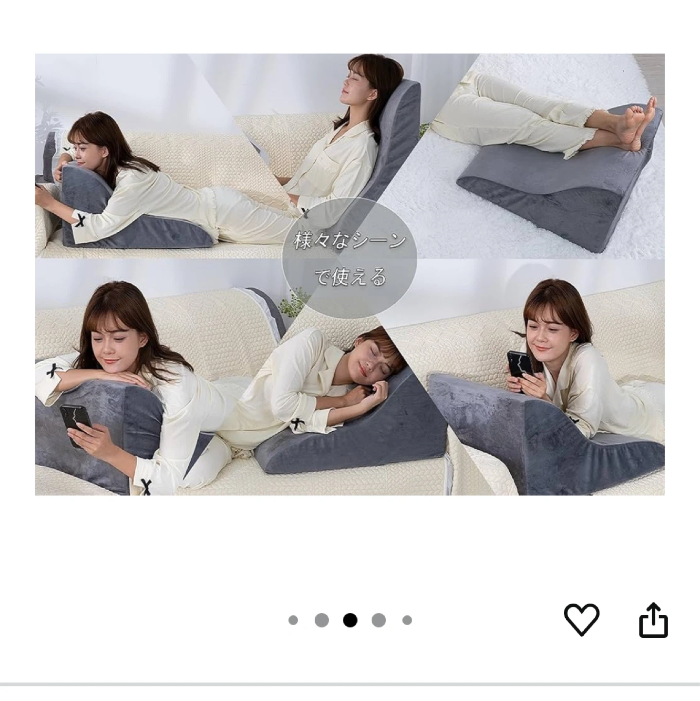 アンジーの三角枕です ・色:グレー ・サイズ:63cm x 50cm x 33cm (Amazon listingより) ・背もたれ、腰枕として使用可能 様々な使い方ができますが 私は妊娠中の悪阻期と産後辛い時に少し使用して自宅保管していました。 特に目立った汚れなどもありませんが 圧縮できないため このままのお渡しになります。 定価¥5,900ほどだったかと思います。 出産準備中の方やソファをお使いでない方など おススメです。 ご検討よろしくお願いいたします。