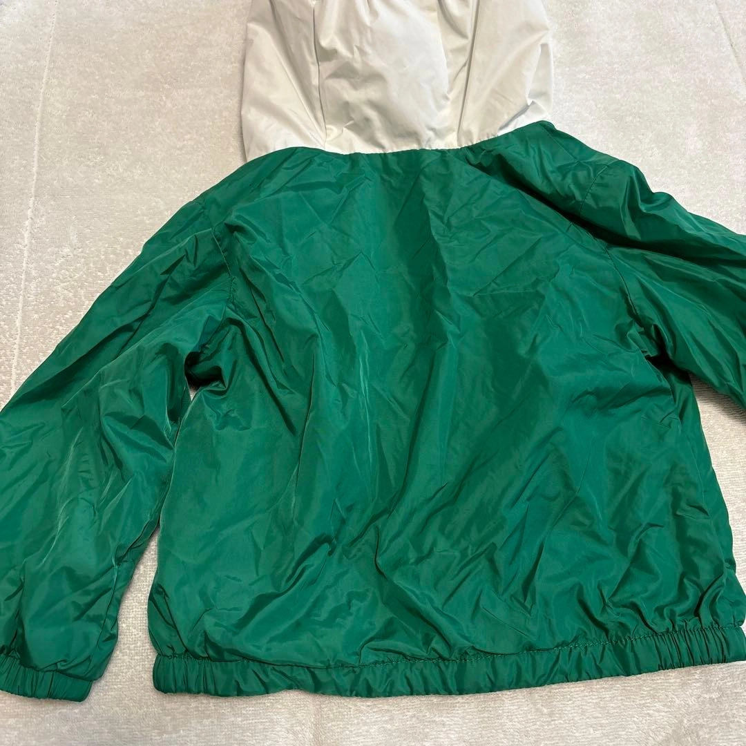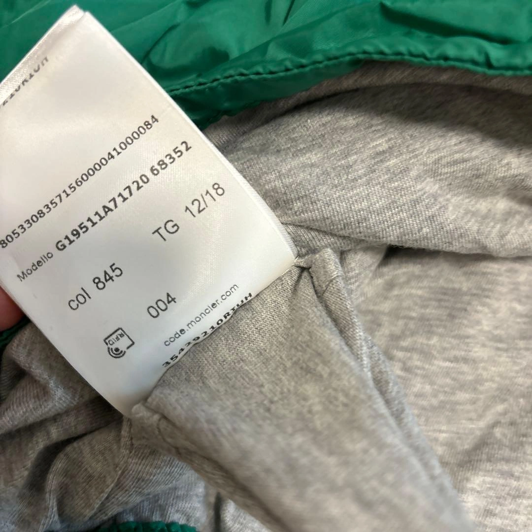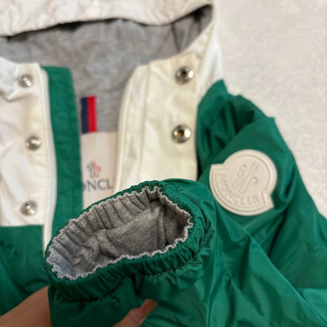 MONCLERのジャケットです。 耐久性のあるナイロン素材で、軽量でありながら保温性に優れています。 フード付きのデザインで、カジュアルなスタイルに合うかと思います。緑と白の配色です。 ジッパー式の前開きで、着脱が簡単です。袖口はゴム仕様です。 - ブランド: MONCLER - 色: 緑・白 - 素材: ナイロン - デザイン: フード付き・ジッパー式 - サイズ: 100cm ご覧いただきありがとうございます。