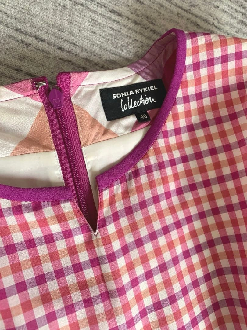 ソニアリキエルのピンクと白のギンガムチェックのノースリーブAラインワンピース、ポケット付きです。 使用僅か、美品です サイズ:40 身幅: 約47cm 着丈: 約97cm 素人の平置き採寸になります。 - 色: ピンクと白のギンガムチェック - デザイン: ノースリーブ - 特徴: ポケット付き - スタイル: Aライン カーディガン等に合わせてもとても可愛いです。 ご覧いただきありがとうございます。