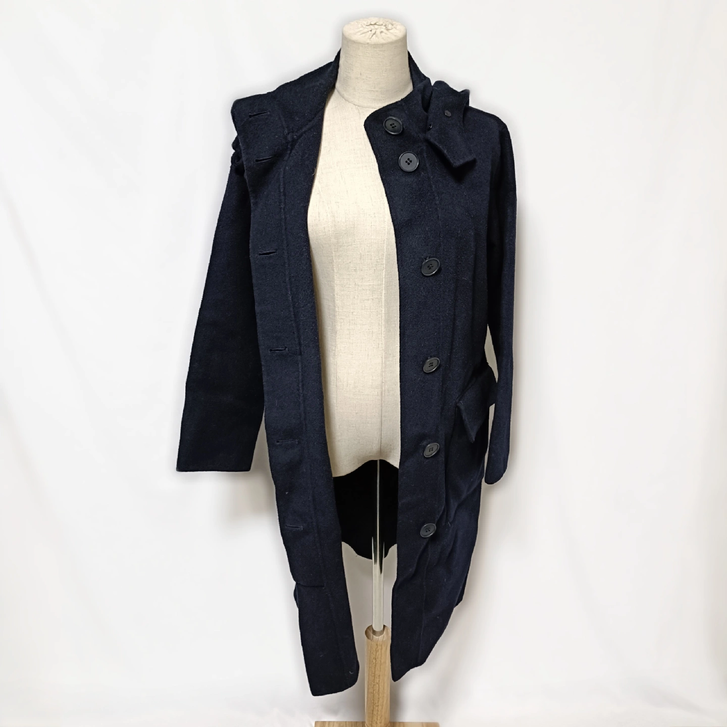 ご覧いただきありがとうございます! Theoryの定番人気素材「NEW DIVIDE(ニューディバイド)」を使用した、上質なフーデッドコートです。 カシミヤをブレンドしたウール素材は、肌触りが良く暖かいうえ、軽やかな着心地が魅力です。 ダブルフェイス仕立てのため、高級感があり、防寒性にも優れています。 ​ボタンで留めるデザインはダッフルコートのような雰囲気もあり、カジュアルからきれいめまで幅広くお使いいただけます。 ​ #joymaxお得なプロフへ #ゆうの古着屋さん_レディースアウター □商品名□ ​​​美品 Theory NEW DIVIDE フーデッドコート P ネイビー カシミヤ混 □ブランド□ Theory セオリー □表記サイズ□ P(日本サイズのS〜M相当) □実寸サイズ(cm) □ 着丈:93 肩幅:44 身幅:49 袖丈:58 ※実寸につきまして多少の誤差はご了承ください。 ※表記サイズだけではなく実寸のサイズをご確認ください。 □カラー□ ネイビー □素材□ ウール、カシミヤ混 □コンディション□ 目立った汚れやダメージなど特にございません。 ※汚れはできる限り写真にて掲載しております。まずは画像をご確認ください。 どうぞよろしくお願い致します。 □商品管理番号□ II1-P-5495