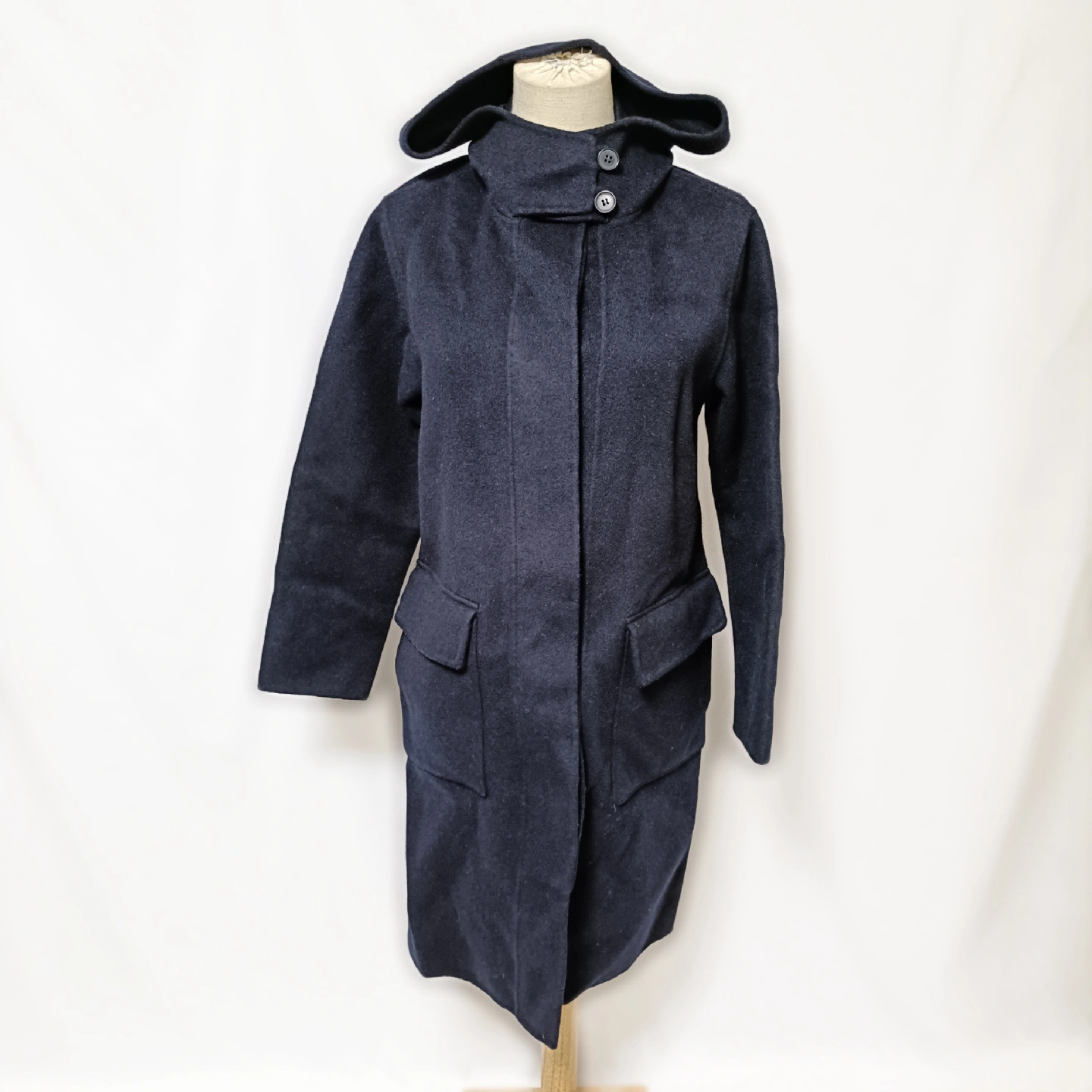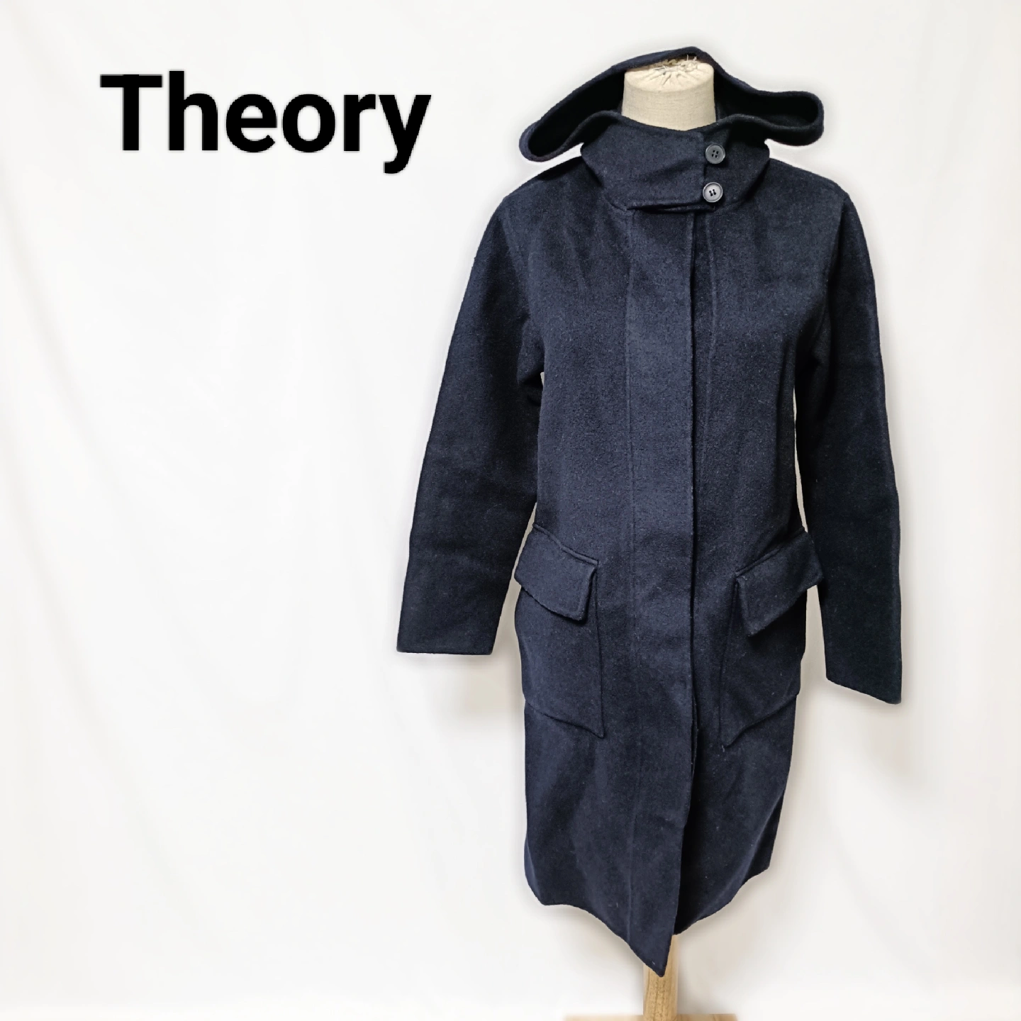 ​美品 Theory NEW DIVIDE フーデッドコート P 紺 カシミヤ混
