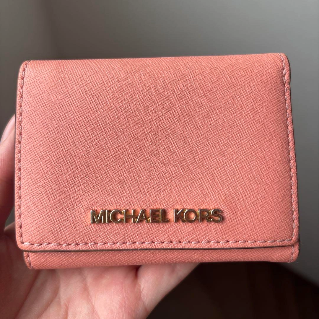 ご覧いただきありがとうございます。 MICHAEL KORS(マイケル・コース)のピンクの三つ折り財布です。 コンパクトなサイズ感で、カードポケットや透明ポケットがあり、収納力もあります。 コインケース部分に多少の汚れがありますが、その他は目立つ傷や汚れはなく、まだお使いいただけます。 商品詳細 •ブランド :MICHAEL KORS •カラー:ピンク •デザイン:三つ折り財布 •内部構造:カードポケット、透明ポケット •付属品:なし(本体のみ) ご希望の方はお気軽にご連絡ください。