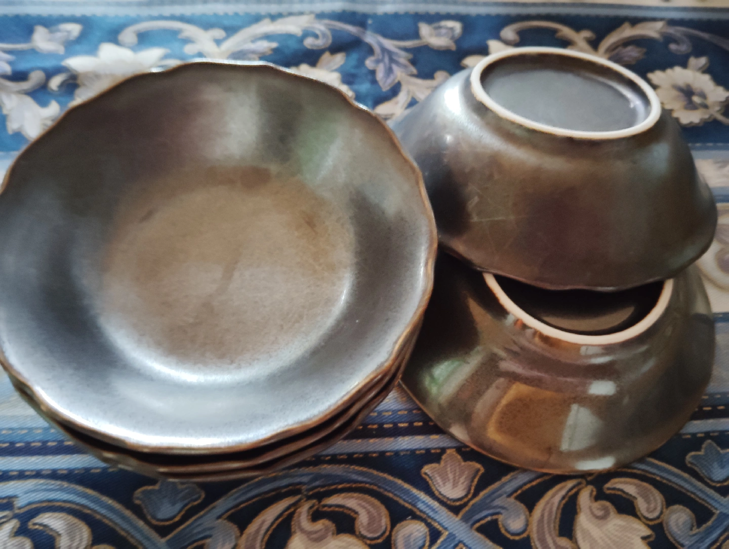 理由あり 萩焼 水面に花びら散る、角皿 3枚セット